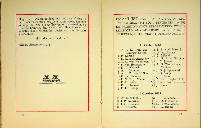 KM: 1904 Den Helder 1904, softcover 46 blz., met de namen vanaf 1854 van alle adelborsten die werden ingeschreven