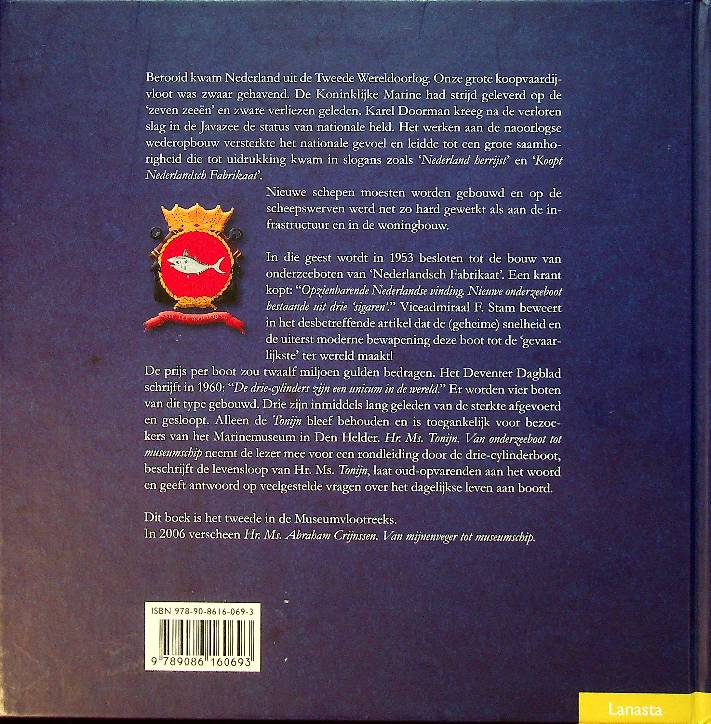 Roetering, B. en Henk Visser: Lanasta, hardcover 96 blz., rijk geïllustreerd. Bouw, geschiedenis en levensloop van deze driecilinder onderzeeër. De geschiedenis van de Nederlandse onderzeeboot Hr.Ms. Tonijn, van de bouw tot haar huidige functie als museumschip. De onderzeeboot voerde tijdens de Koude Oorlog talrijke geheime inlichtingenoperaties uit, waaronder het bespioneren van de Russische vloot in de Middellandse Zee en de Noorse Zee. ISBN 9789086160693 In zeer goede staat