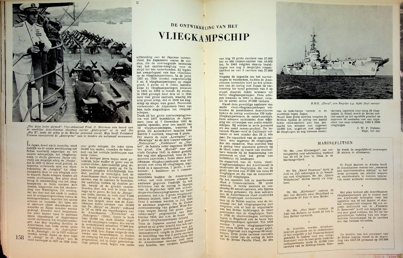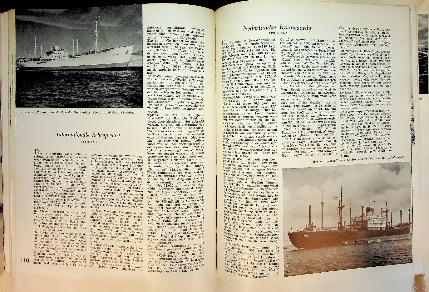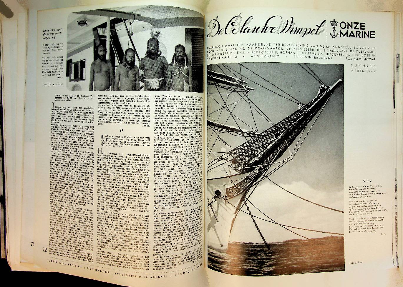 Diverse auteurs: 1946, 12 ingebonden maandnummers, geïllustreerd, met alle wetenswaardigheden van onze marine. Naoorlogs maritiem tijdschrift dat verslag doet van de heropbouw en inzet van de Koninklijke Marine, met nadruk op terugkeer naar operationele paraatheid, personeelsvoorziening en vlootactiviteiten in Europa en de Indische Archipel na de capitulatie van Japan. De jaargang bevat reportages en kronieken over scheepsbewegingen, taken van mariniers en materieel. In zeer goede staat