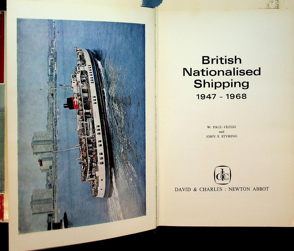 Clegg, P and J.S. Styring: 1969 UK, hardcover with dust jacket, 303 pages, with photos. ritish Nationalised Shipping 1947-1968 by W. Paul Clegg and John S. Styring provides a detailed account of the vessels operated by British nationalised railway authorities, focusing on cross-channel and smaller ships between 1947 and 1968. The book offers extensive descriptions and historical context for the fleets under government control during a transformative period in post-war maritime transport. In good condition.