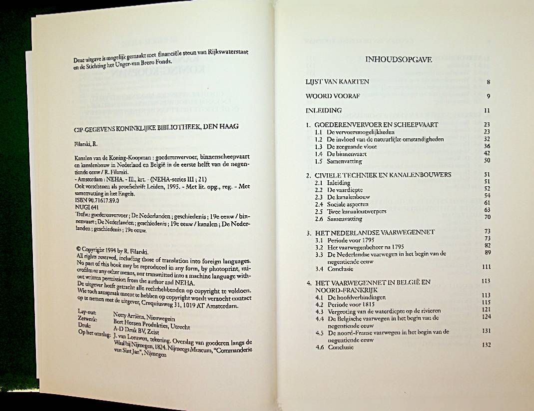 Filarski, R: Neha 1996, hardcover 490 blz. , geïllustreerd. Kanalen van de koning-koopman van R. Filarski onderzoekt hoe goederenvervoer, binnenscheepvaart en grootschalige kanalenbouw in Nederland en België zich ontwikkelden in de eerste helft van de 19e eeuw, met bijzondere aandacht voor de rol van Koning Willem I als aanjager van infrastructuur voor handel en industrie. Het werk, oorspronkelijk een proefschrift, plaatst projecten zoals het Noordhollandsch Kanaal in de bredere economische en beleidsmatige context van de “koopmankoning”, en laat zien hoe ambities, techniek en veranderende scheepvaartbehoeften elkaar soms kruisten en soms misliepen. ISBN 9789071617898 In zeer goede staat
