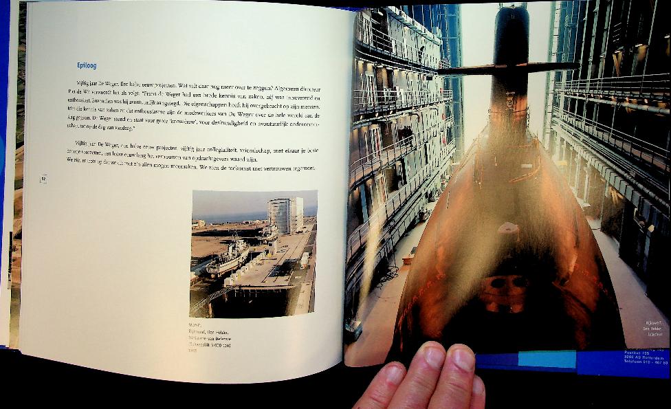 Collectief: 1999 Rotterdam, hardcover met papieromslag, 58 blz., geïllustreerd. Het boek "50 jaar De Weger 1949-1999" beschrijft de geschiedenis van het Ingenieurs- en Architectenbureau F.C. de Weger, met speciale aandacht voor hun maritieme projecten in Rotterdam en de significante bijdrage aan maritieme bouw en infrastructuur. De nadruk ligt op de ontwikkeling van moderne opleidingsgebouwen, kantoren en maritieme faciliteiten voor onder andere de Koninklijke Marine, waarmee De Weger een blijvende invloed heeft gehad op het maritieme stadsbeeld. In zeer goede staat