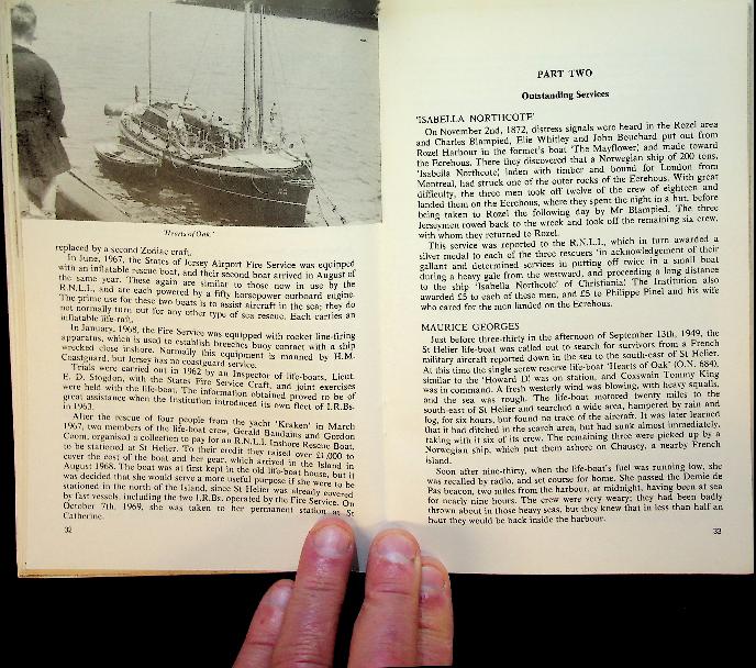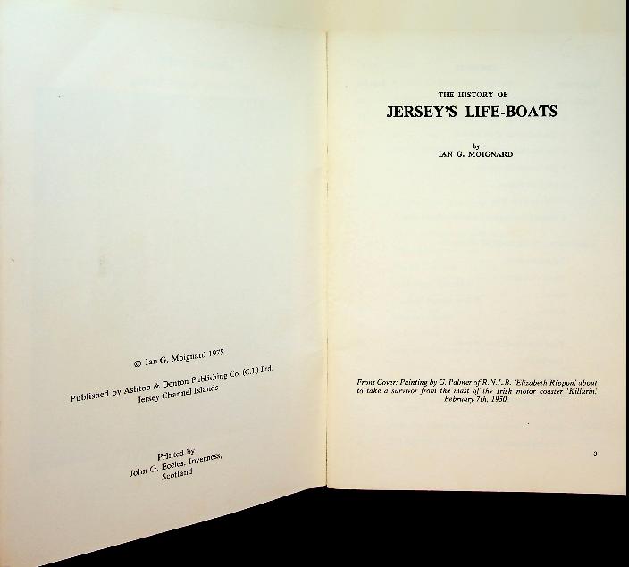 Moignard, I.G.: 1975 Jersey, softcover, 84 pages, illustrated. Moignard provides a detailed account of the lifeboats serving Jersey, focusing particularly on the St. Helier lifeboat, with illustrations and notable rescue histories. This illustrated volume documents the evolution of rescue operations and lifeboat technology on the island, highlighting significant launches and heroic events. ISBN 9780850530056 In good condition