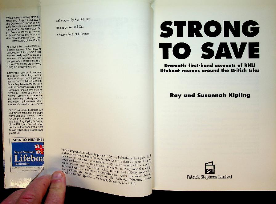 Kipling, R. and S: 1995 PSL, hardcover with dustjacket 256 pages, illustrated. "Strong to Save" by Ray Kipling offers dramatic first-hand accounts of lifeboat rescues around the British Isles, highlighting the bravery and commitment of RNLI crews in harrowing maritime emergencies. The book provides vivid narratives of real rescue missions, showcasing both the dangers faced at sea and the heroism required to save lives along the coast. ISBN 9781852604950 In very good condition