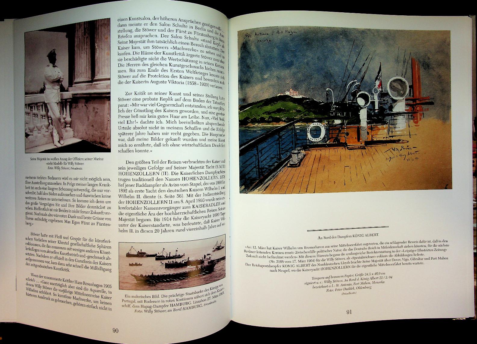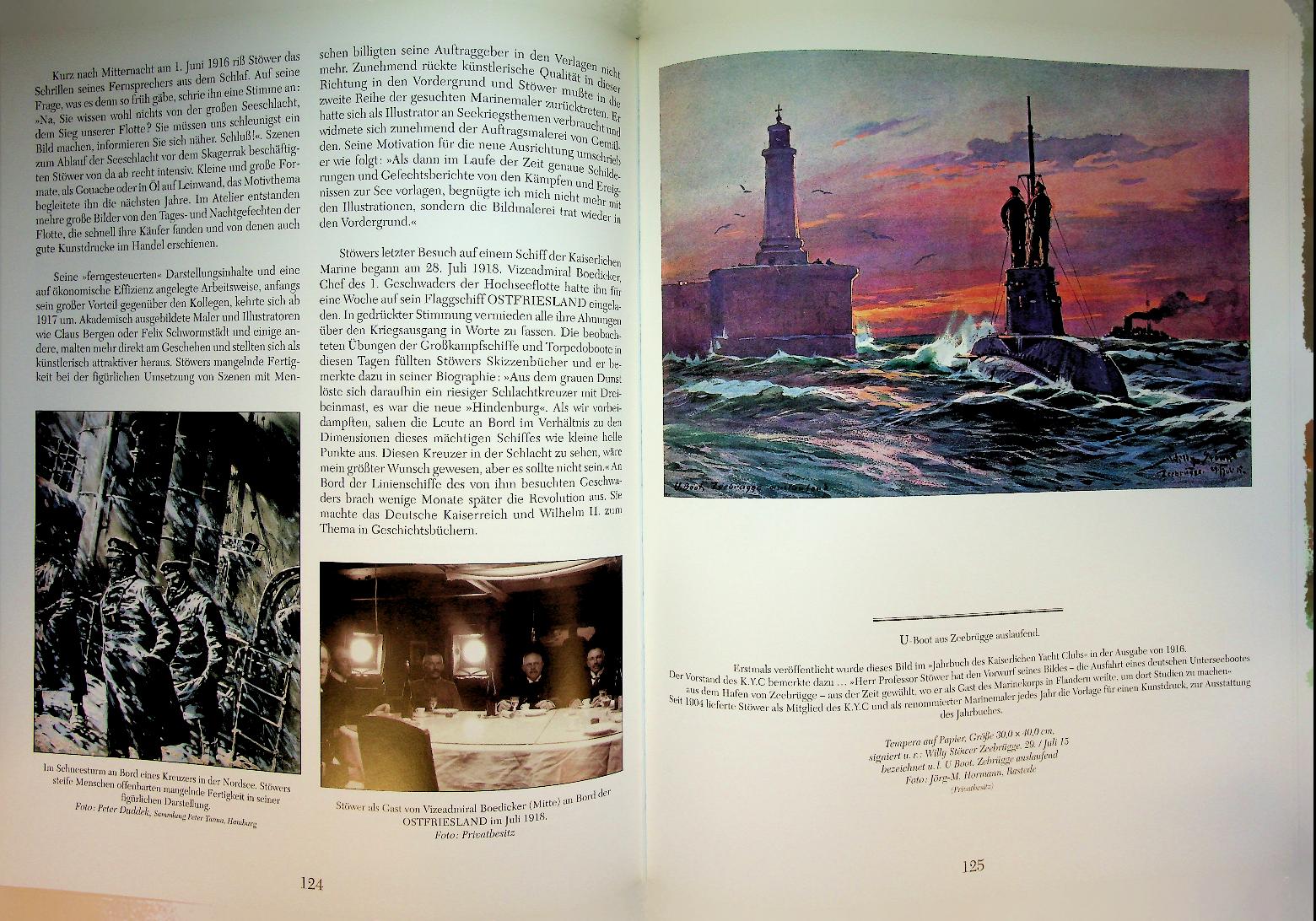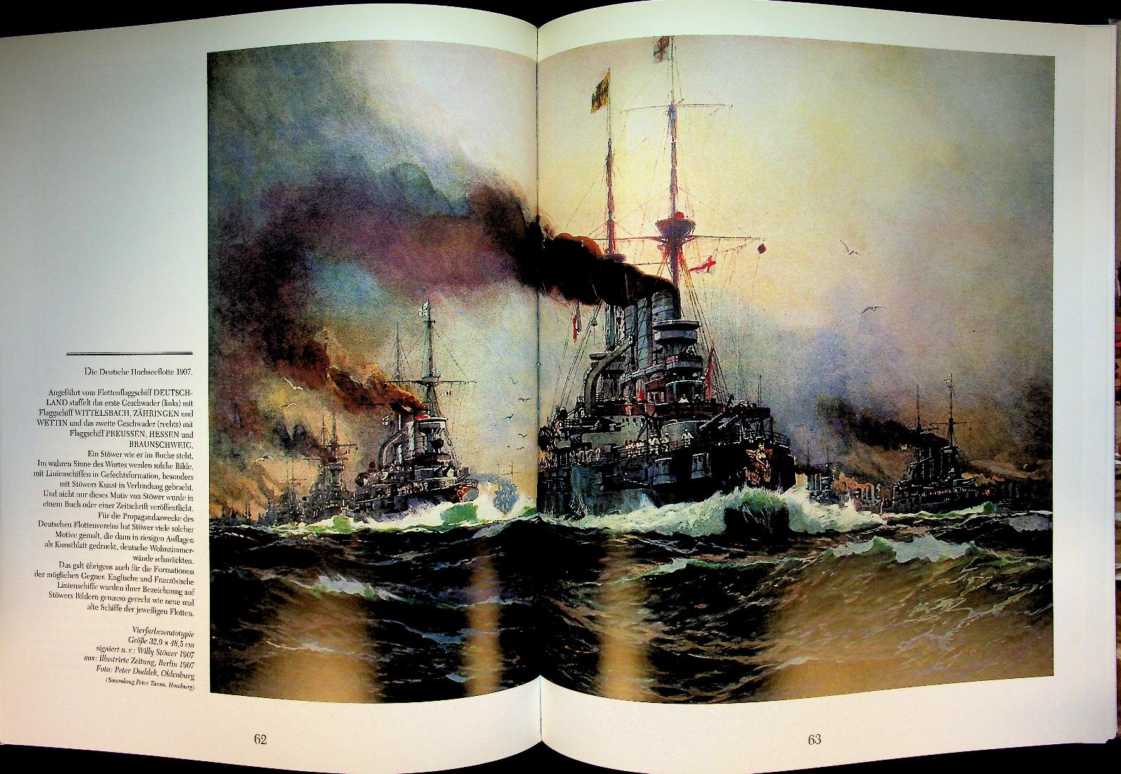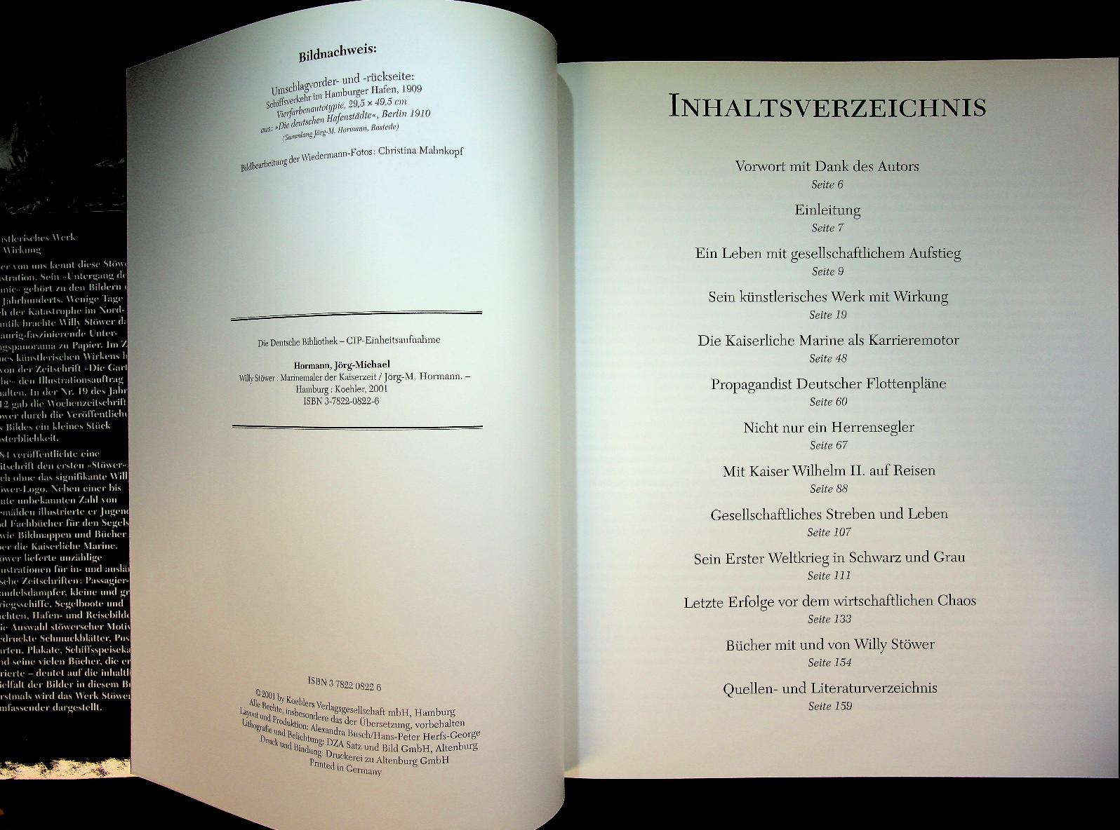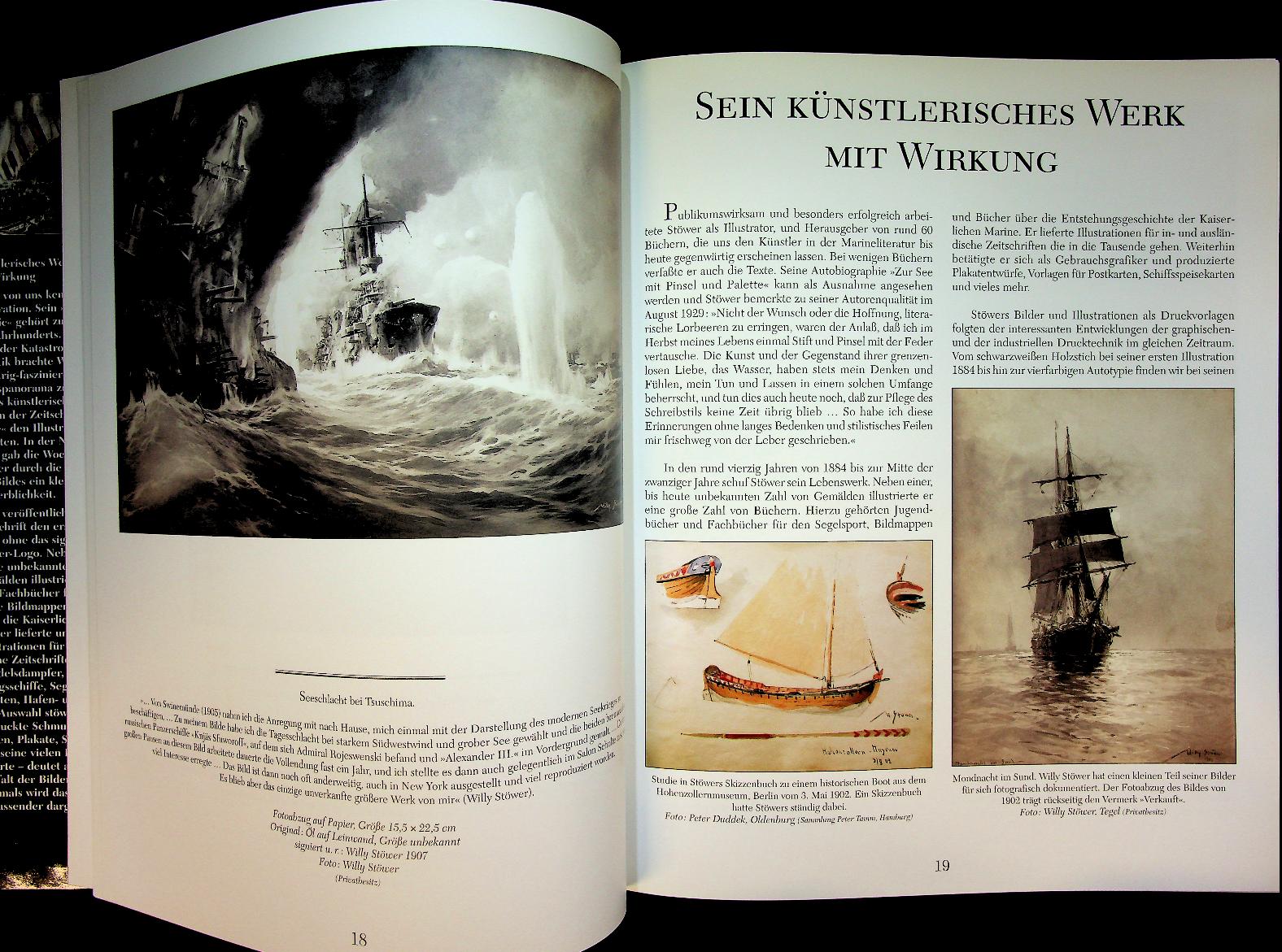 Hormann, Jorg M.: 2001 Koeher Hamburg, hardcover with dust jacket, 159 pages, illustrated. Willy Stöwer. Marinemaler der Kaiserzeit. Leben und Werk by Jörg Michael Hormann is the standard monograph on German marine painter Willy Stöwer, combining a detailed biography with an extensive, richly illustrated survey of his paintings, gouaches and graphic work from the Kaiser zeit. The book serves as a key reference for collectors, maritime historians and art enthusiasts interested in imperial German naval imagery and marine painting around 1900 ISBN 9783782208222 In very good condition. German Language