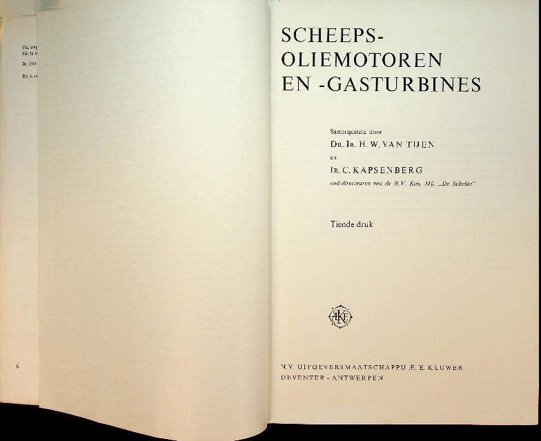 Tijen, H.W. van en C. Kapsenberg: 1965 Kluwer Deventer, hardcover met papieromslag 635 blz., met de gegevens van de motoren van Werkspoor, Stork, Sulzer, Burmeister, MAN, Doxford, Kromhout, Brons, Industrie en Bolnes. In zeer goede staat