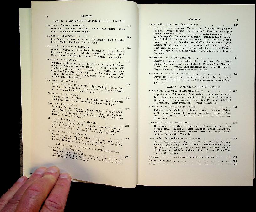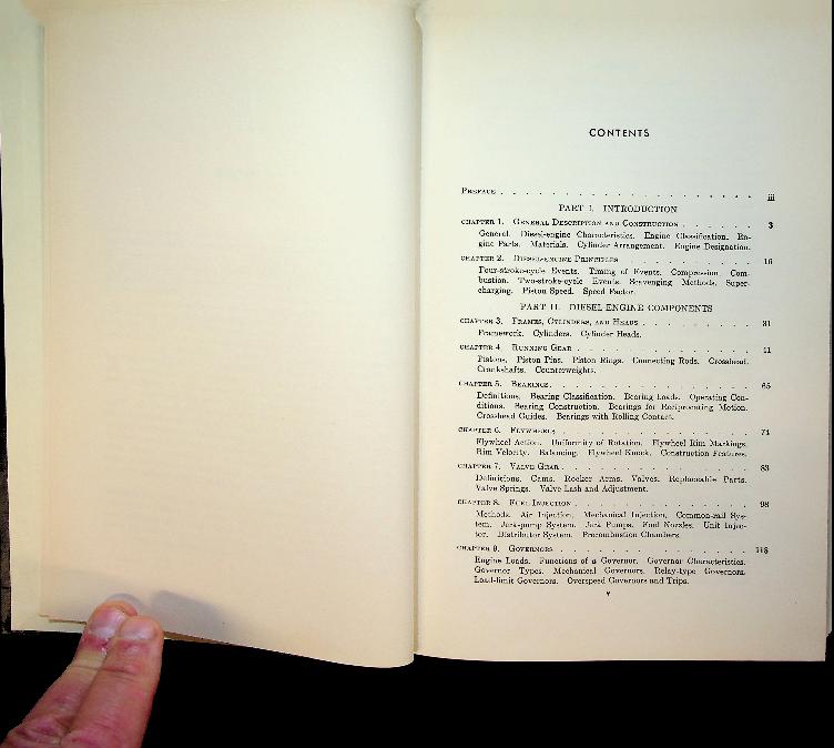 Maleev, M: ca. 1970 USA, hardcover, 503 pages, illustrated. “Diesel Engine Operation and Maintenance” van Vladimir L. Maleev (1970‑editie, oorspronkelijk 1954) is een praktische handleiding over de constructie, werking, onderhoud en reparatie van moderne dieselmotoren, bedoeld als leerboek en naslagwerk voor technici en machinisten. Het boek behandelt zowel de theorie (verbranding, brandstofsystemen, smering, koeling) als praktische storingsdiagnose en werkplaatstechnieken. Behandelde motoren. Maleev richt zich op toenmalige “moderne” viertakt- en tweetakt‑dieselmotoren met directe en indirecte inspuiting, in lijn‑ en V‑configuratie, zoals gebruikt in stationaire installaties, voertuigen en schepen. De nadruk ligt op middel‑ tot grootvermogens industriële en marine‑diesels, inclusief meertraps brandstofpompen, verstuivers, turboladers en hulpsystemen zoals start- en smeeroliesystemen. In zeer goede staat