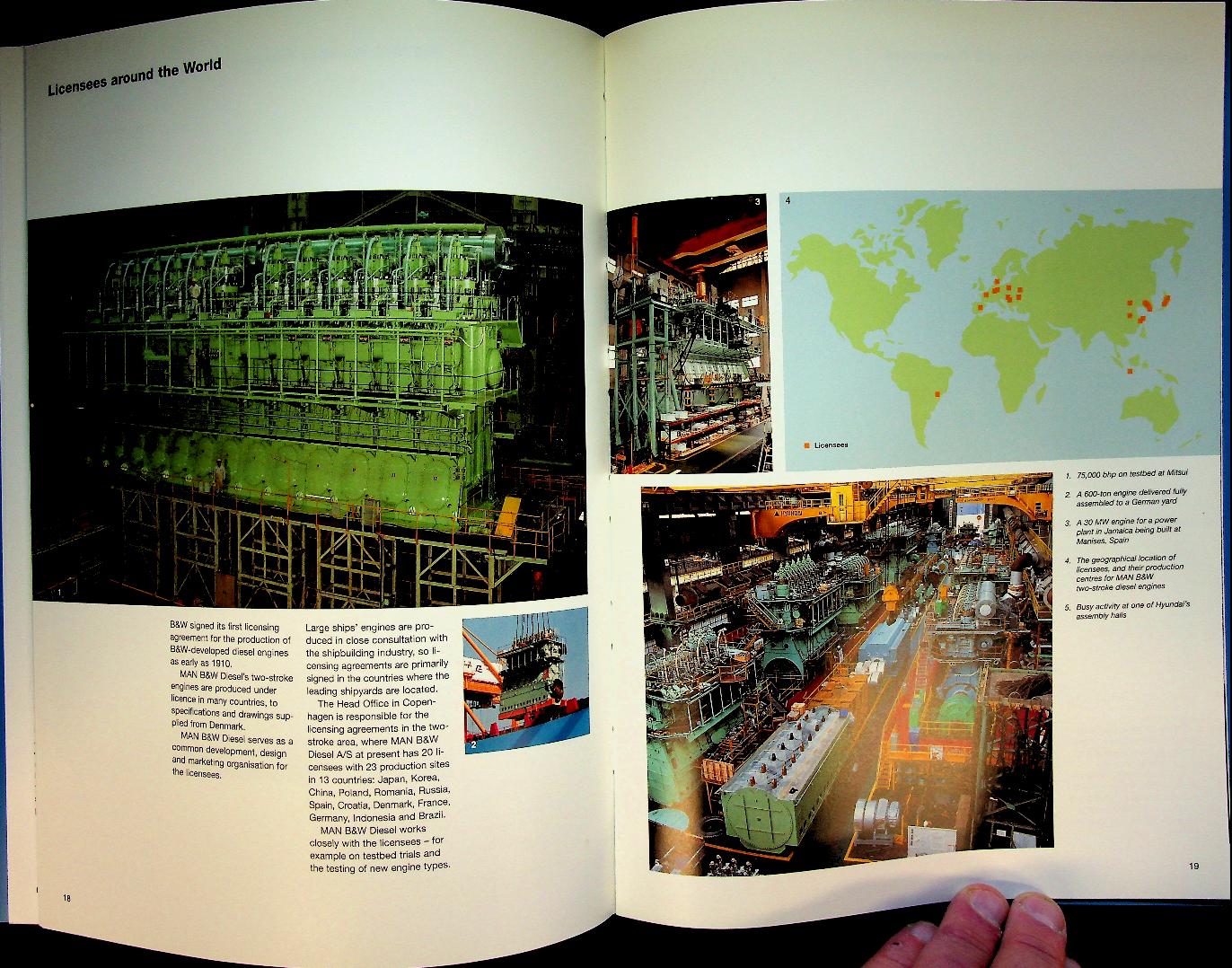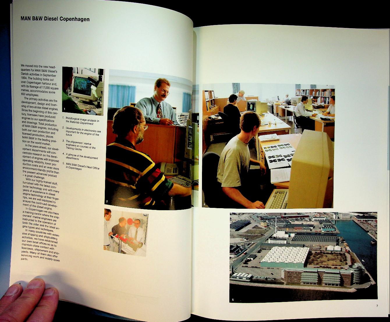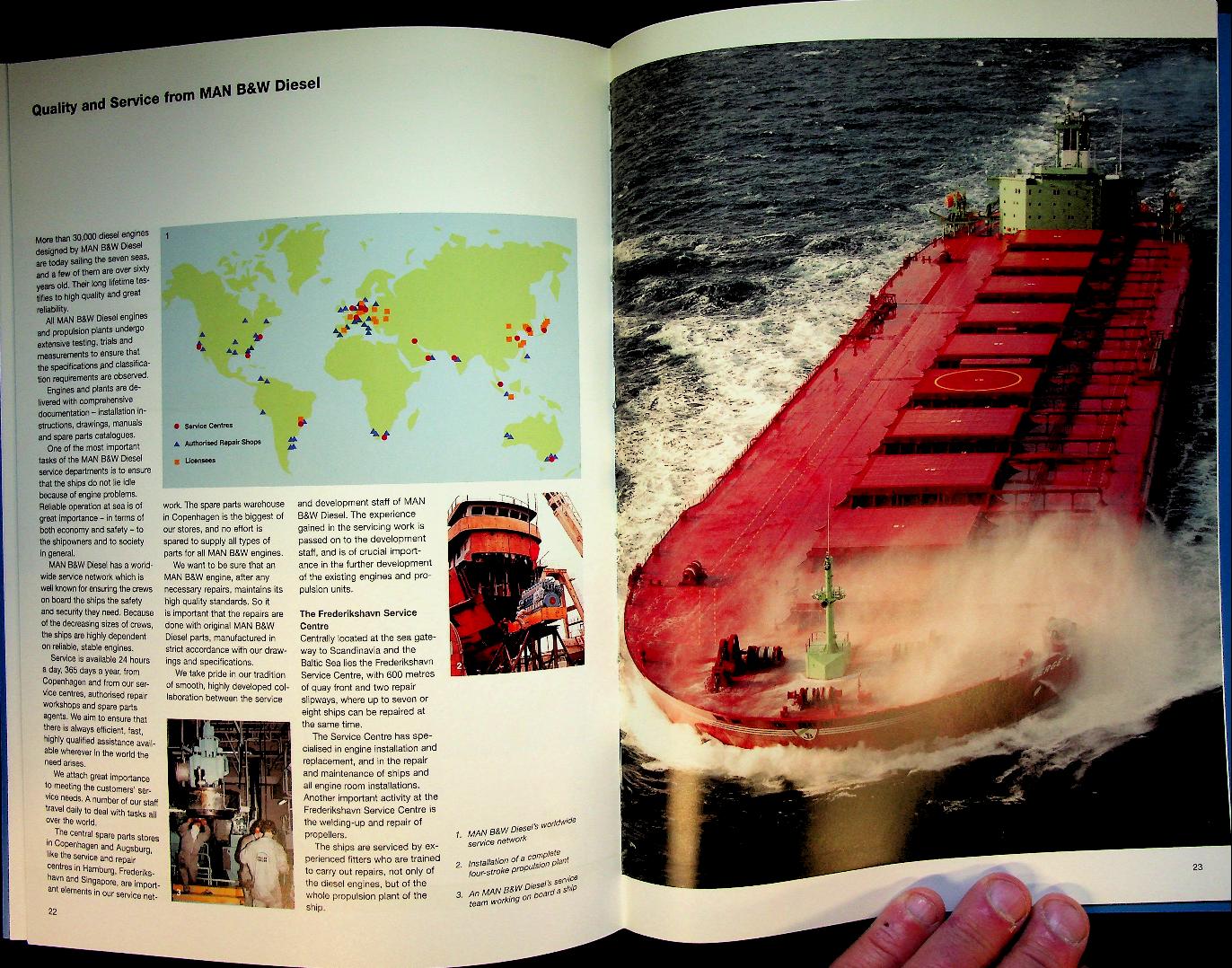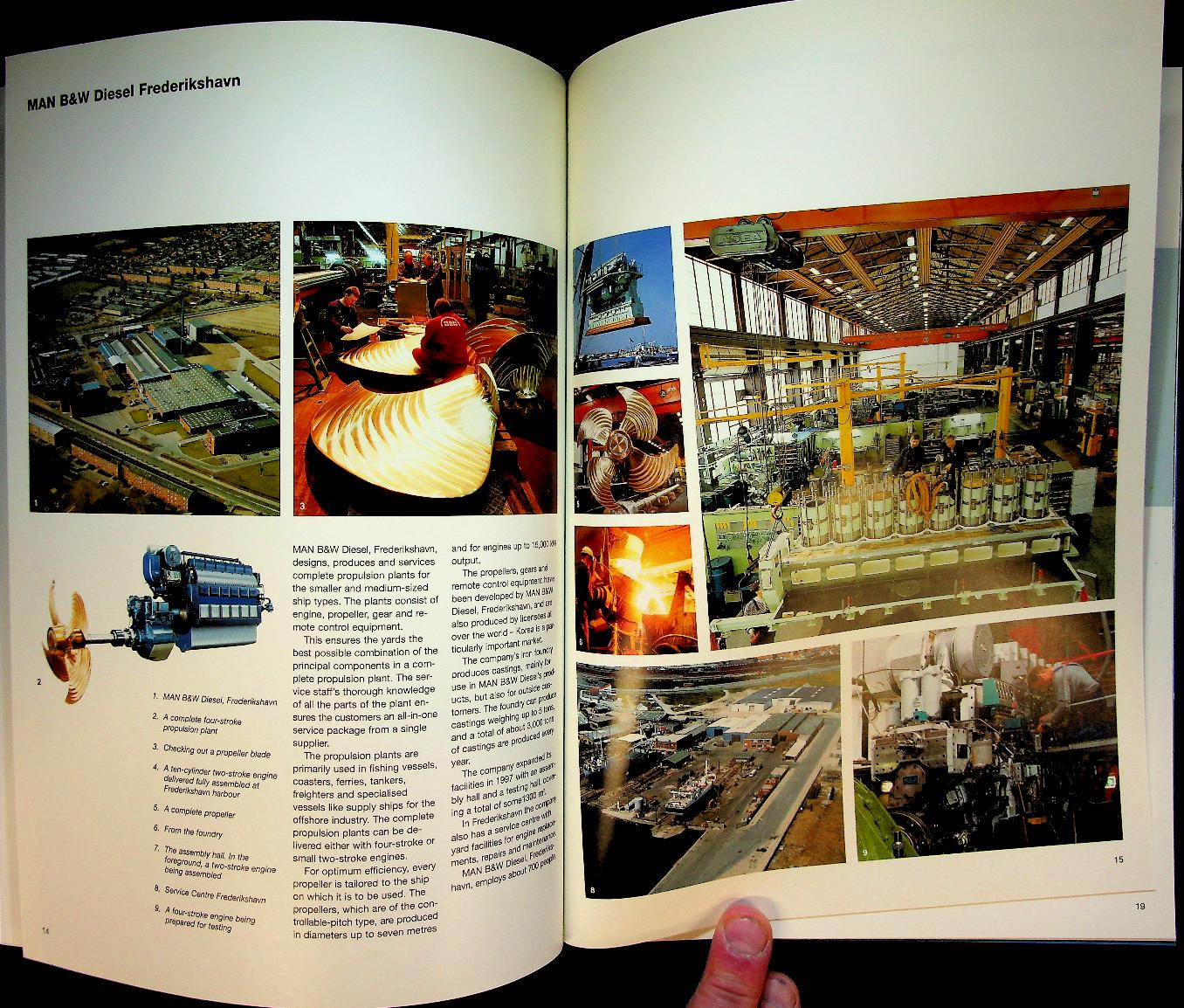 MAN B&W: 1997 Denmark, softcover, 28 pages, illustrated. Publication of the marine engines of MAN B&W, with many photos and information. In very good condition