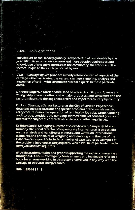 Rogers, P a.o.: 1991 UK, hardcover with dust jacket, 250 pages, illustrated. Coal Carriage By Sea explains the international seaborne trade in coal, describing coal production and demand worldwide and how these shape routes, markets, and commercial practices in the industry. It examines in detail the ships and terminals used, technical and safety issues in loading, carrying and discharging coal cargoes, and the legal and commercial framework of chartering and coal transportation contracts. ISBN 9781859781081 In very good condition