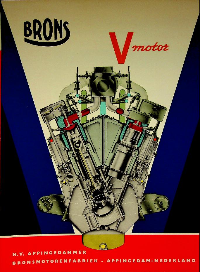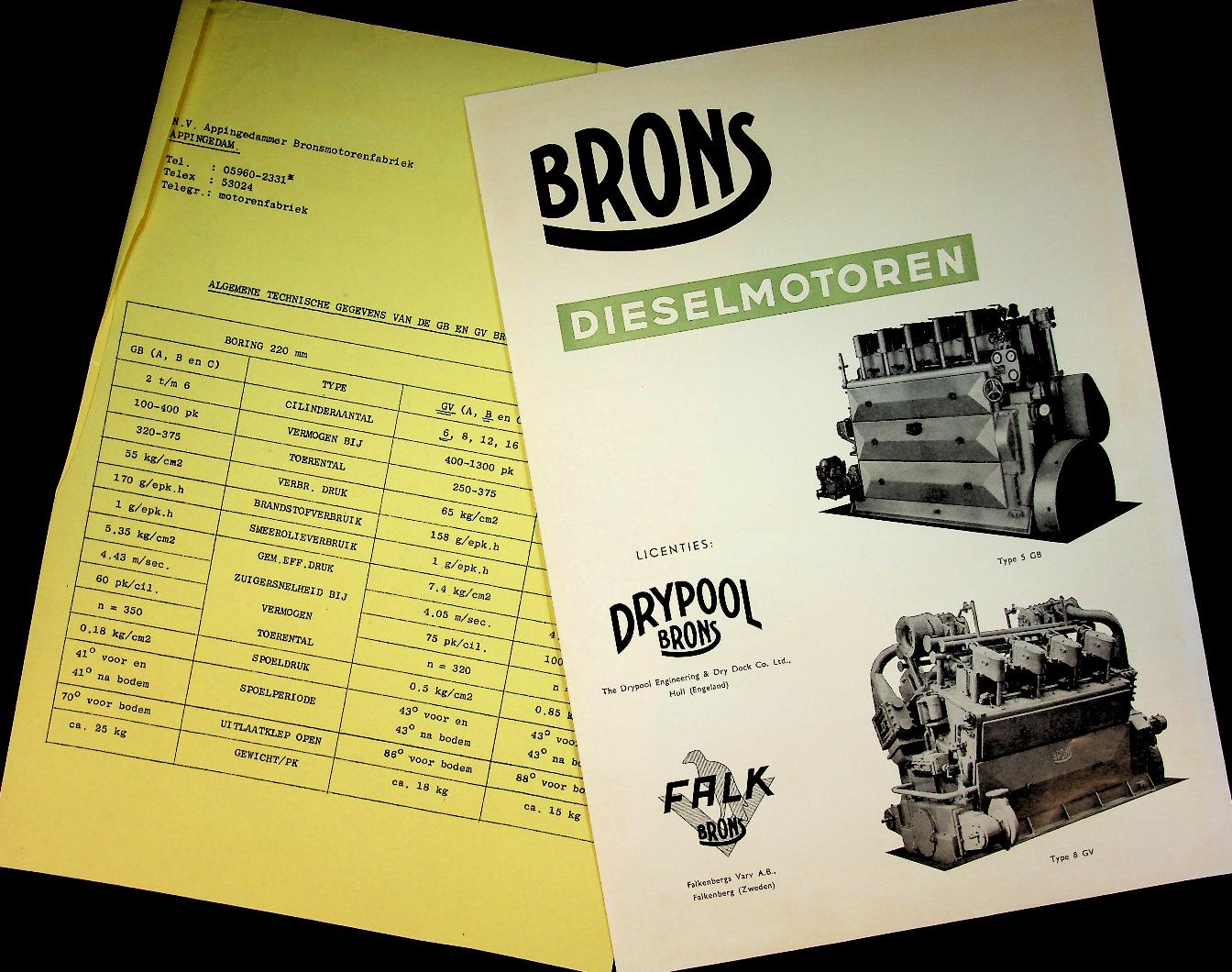 Brons: ca. 1965, softcover, met een brochure Brons V-Motor, 4 blz. en blad van de GV en GB Motor en een blad met technische specificaties van beide motoren. In goede staat