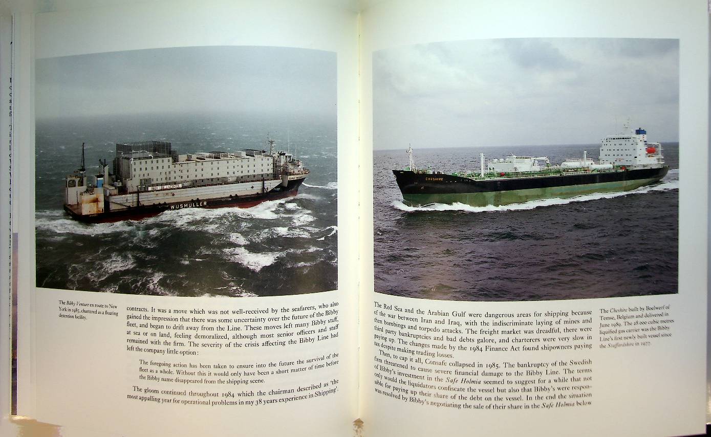 Watson, Nigel: 1990 Liverpool, hardcover with dustjacket 74 pages, with photos and a large detailed historical fleet list. Nigel Watson traces the development of the Liverpool-based Bibby shipping enterprise from John Bibby’s early shipowning ventures in 1801 through nearly two centuries of trade, conflict, and commercial change, showing how the company adapted to wars, technological shifts, and global economic cycles. It combines detailed company and family history with rich illustrations, including documents, paintings, prints, and historical photographs, to portray Bibby Line’s enduring role as a significant force in international shipping by the late twentieth century. ISBN 9780907383178 / 0907383123 In very good condition