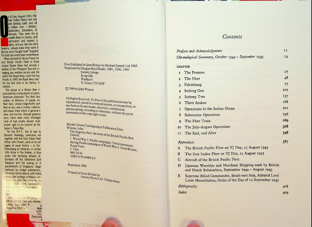 Winton, J: 1993 UK, hardcover with dust jacket 433 pages, with photos and index. narrative history of the British Pacific Fleet in 1944–45, highlighting how this powerful yet largely overlooked force helped to bring about the defeat of Japan in the final stages of the Second World War. Drawing on official records and personal testimonies, Winton describes the political struggles, logistical challenges, and intense carrier operations that led to the fleet’s marginalization in post‑war memory. ISBN 9780951448007 In very good condition