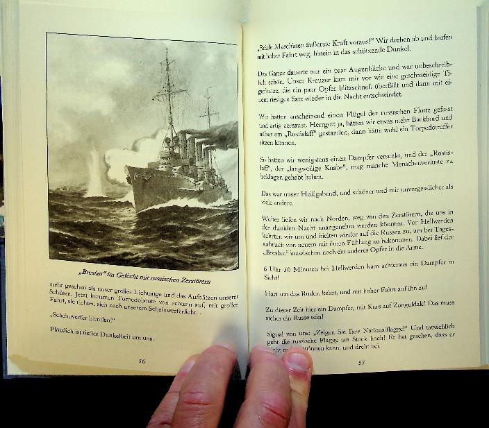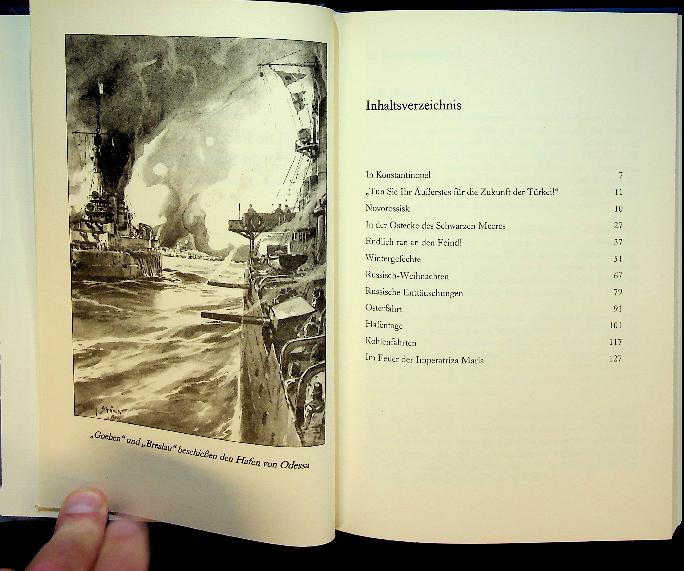 Donitz, K: reprint ca. 2005 Melchior Historischer Verlag, hardcover, 143 pages, with photos. “Die Fahrten der Breslau im Schwarzen Meer” is Karl Dönitz’s first‑person account of serving on the light cruiser SMS Breslau (later Ottoman Midilli) during World War I, detailing operations from the Mediterranean through the Bosporus into the Black Sea and engagements against Russian forces alongside battlecruiser Goeben. The narrative emphasizes daily shipboard life, tactical maneuvers, and the strategic implications of the Breslau/Goeben dash to Constantinople that brought the Ottoman Empire into the war, foreshadowing Dönitz’s later naval career. ISBN 9783941555174 In very good condition. German language