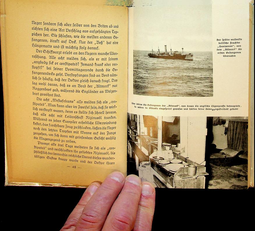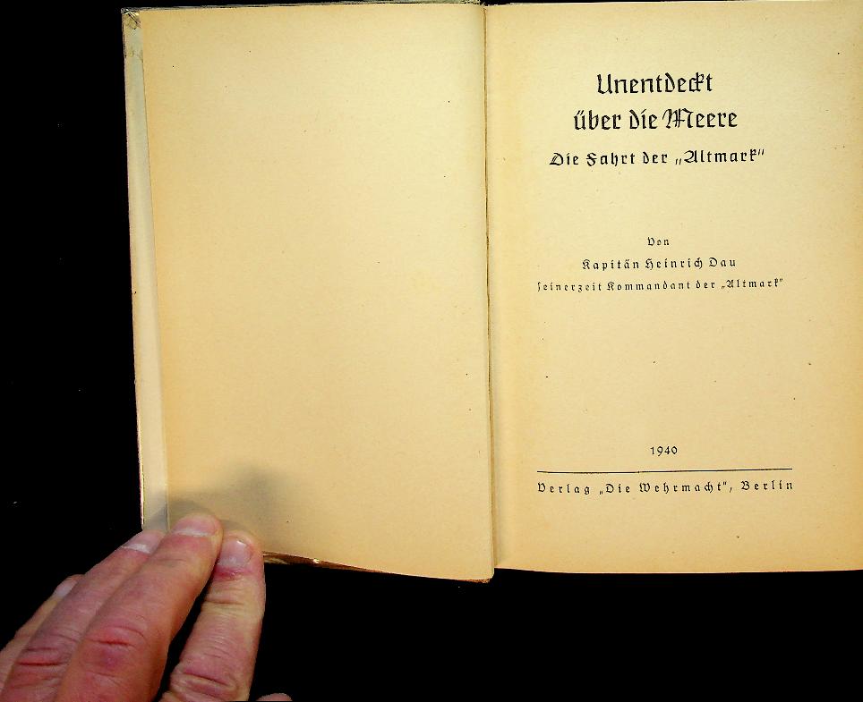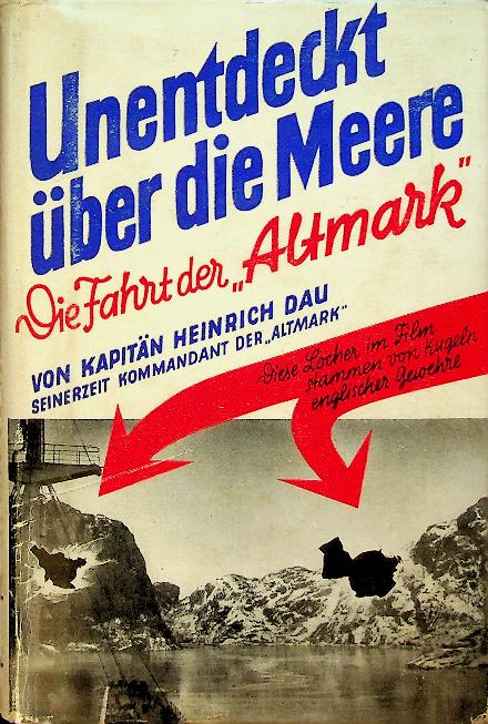 Dau, Heinrich: 1940 Die Wehrmacht Berlin, hardcover with dust jacket, 161 pages, illustrated. a wartime maritime narrative describing the voyages/operations of the German supply ship Altmark during World War II, told in the period’s language. It focuses on the ship’s service as a tanker/supply vessel in a Kriegsmarine context and frames the journey within naval and maritime war history. In very good condition. German language
