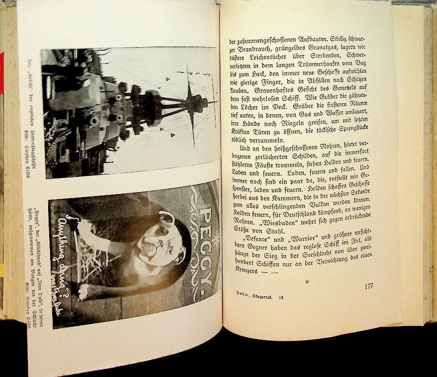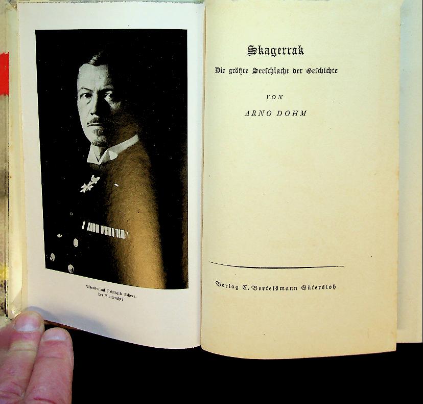 Dohm, Arno: 1936 Germany, hardcover with dust jacket, 324 pages, illustrated. narrative account of the 1916 Battle of Jutland (Skagerrak), presenting the clash between Britain’s Grand Fleet and Germany’s High Seas Fleet as the largest battleship fleet engagement in history. The book focuses on how the battle unfolded at sea, its key maneuvers, ship actions, and outcomes, framed as a dramatic, decisive confrontation of World War I naval power. In very good condition. German language