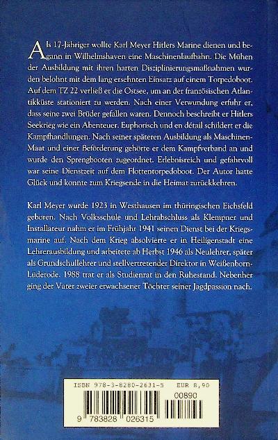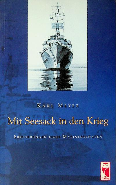 Meyer, Karl: 2008 Berlin, softcover, 112 pages, illustrated. Mit Seesack in den Krieg is a memoir in which German naval soldier Karl Meyer recounts his wartime experiences in the Kriegsmarine, told as personal “memories of a marine soldier.” The book presents his service narrative from the inside, focusing on what he lived through as a sailor rather than a strategic history of the war. ISBN 9783828026315 In very good condition, German language