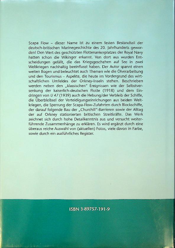 Sauermilch, N.F.: 2004 Hauschild Bremen, hardcover with dust jacket, 271 pages, illustrated. a century of British and German naval history through the strategic anchorage of Scapa Flow, focusing on its role in both World Wars and its close connection to the Orkney Islands. The book combines historical narrative with photographs and documentation to show how this base and its surroundings evolved militarily and politically over time. ISBN 9783897571914 / 3897571919 In very good condition
