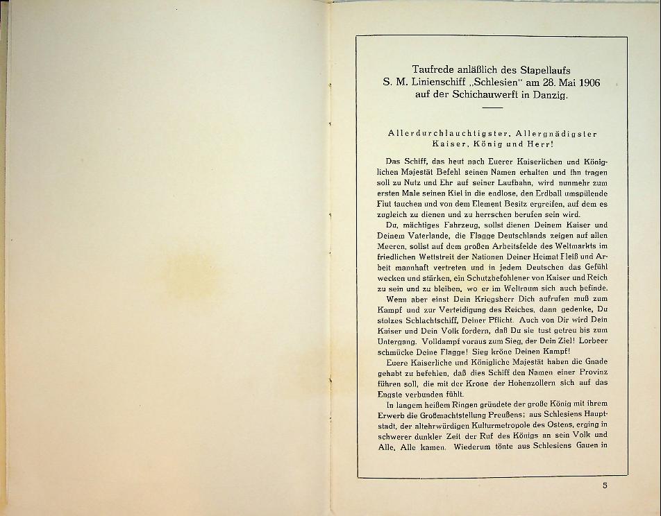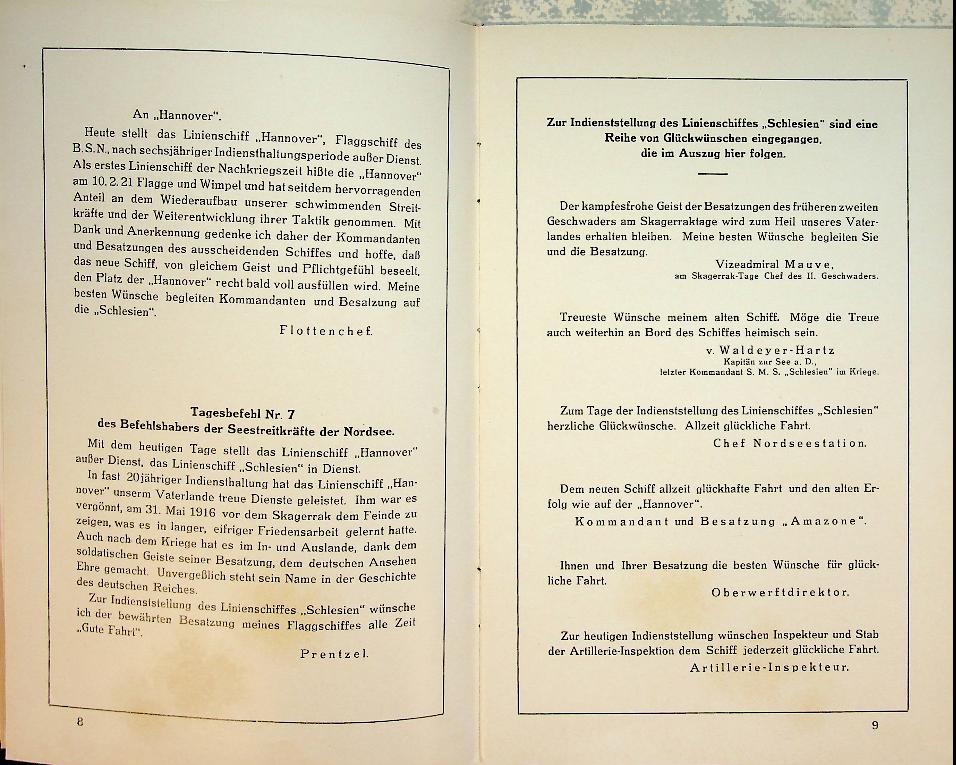 Collective: 1927 Danzig, hardcover, 30 pages, with photo. Book about the re-commissioning of the converted Schlesien, which served as a training ship for the German Navy, with a short history, speeches and personnel. In very good condition. German language