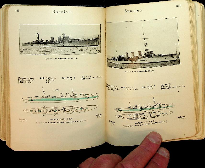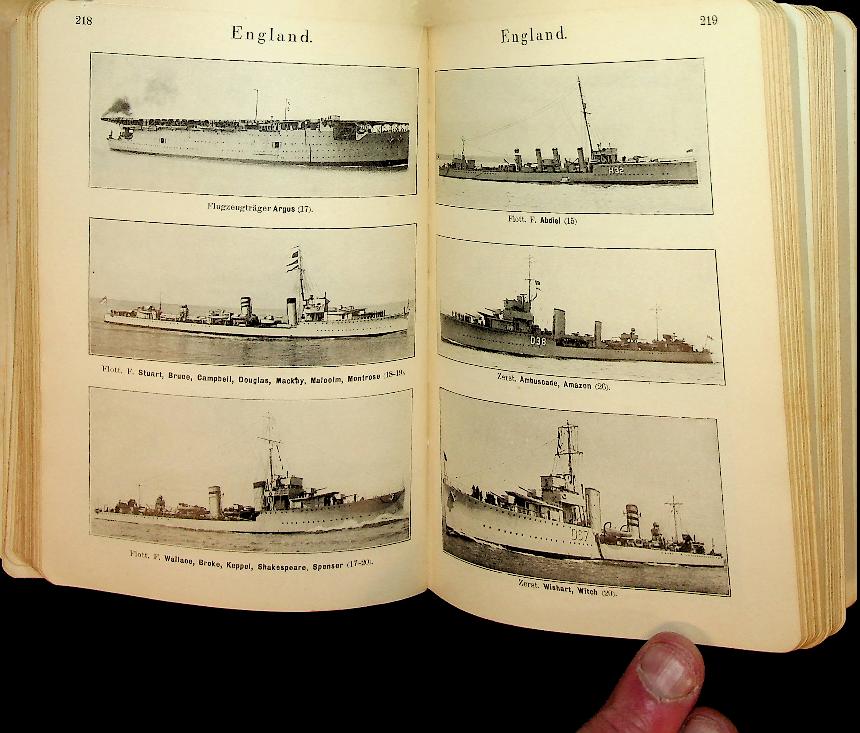 Weyer, B: 1929 Germany, hardcover, 474 pages, illustrated with photos and detailed side-profile drawings. Taschenbuch der Kriegsflotten 1929 (25th edition) by Bruno Weyer is a compact German‑language reference on the world’s navies and warships in the interwar period. The Munich J.F. Lehmanns Verlag volume runs to 474 pages and includes 655 ship drawings, silhouettes and colour flag plates, giving concise data on type, dimensions, armament and fleet organisation for each vessel. With some marks of use