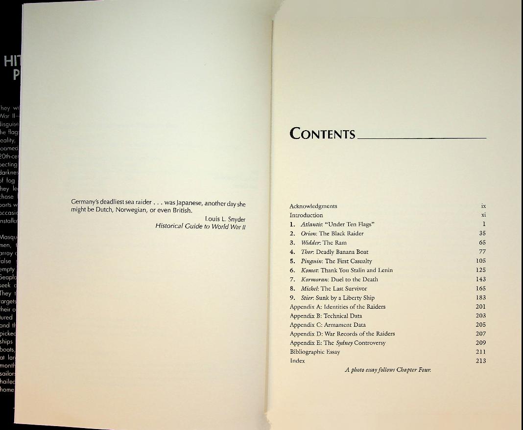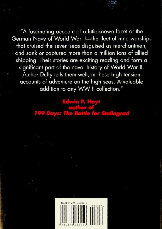 Duffy, J.P.: 2001 USA, hardcover with dustjacket 222 pages, with photos, plans and index. The 9 deadly merchant raiders cruising the seven seas. ames P. Duffy describes how nine German auxiliary cruisers, disguised as harmless merchantmen under neutral or Allied flags, waged a clandestine campaign against Allied shipping across the world’s oceans. Duffy recounts each raider’s operations, tactics, and eventual fate, highlighting their surprising effectiveness and the strategic impact of Germany’s secret surface warfare at sea. ISBN 9780275966850 In very good condition