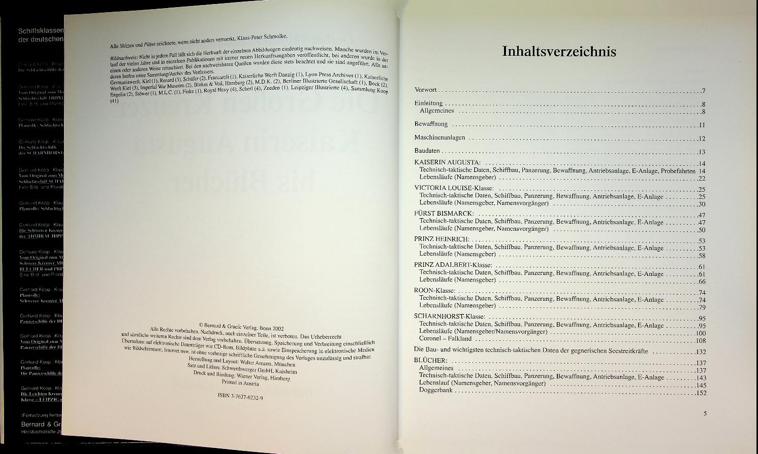 Koop, G. and K.P. Schmolke: 2002 Bonn, hardcover with dustjacket 174 pages. with photos, plans etc. A detailed study of the German Imperial Navy’s large cruisers from SMS Kaiserin Augusta up to SMS Blücher, describing their design, construction and modernization in the context of pre–World War I naval policy. It combines concise historical text with numerous photographs, drawings and tables to document the technical characteristics and operational careers of these ships for enthusiasts and researchers of naval history. ISBN 9783763762323 / 3763762329 In very good condition