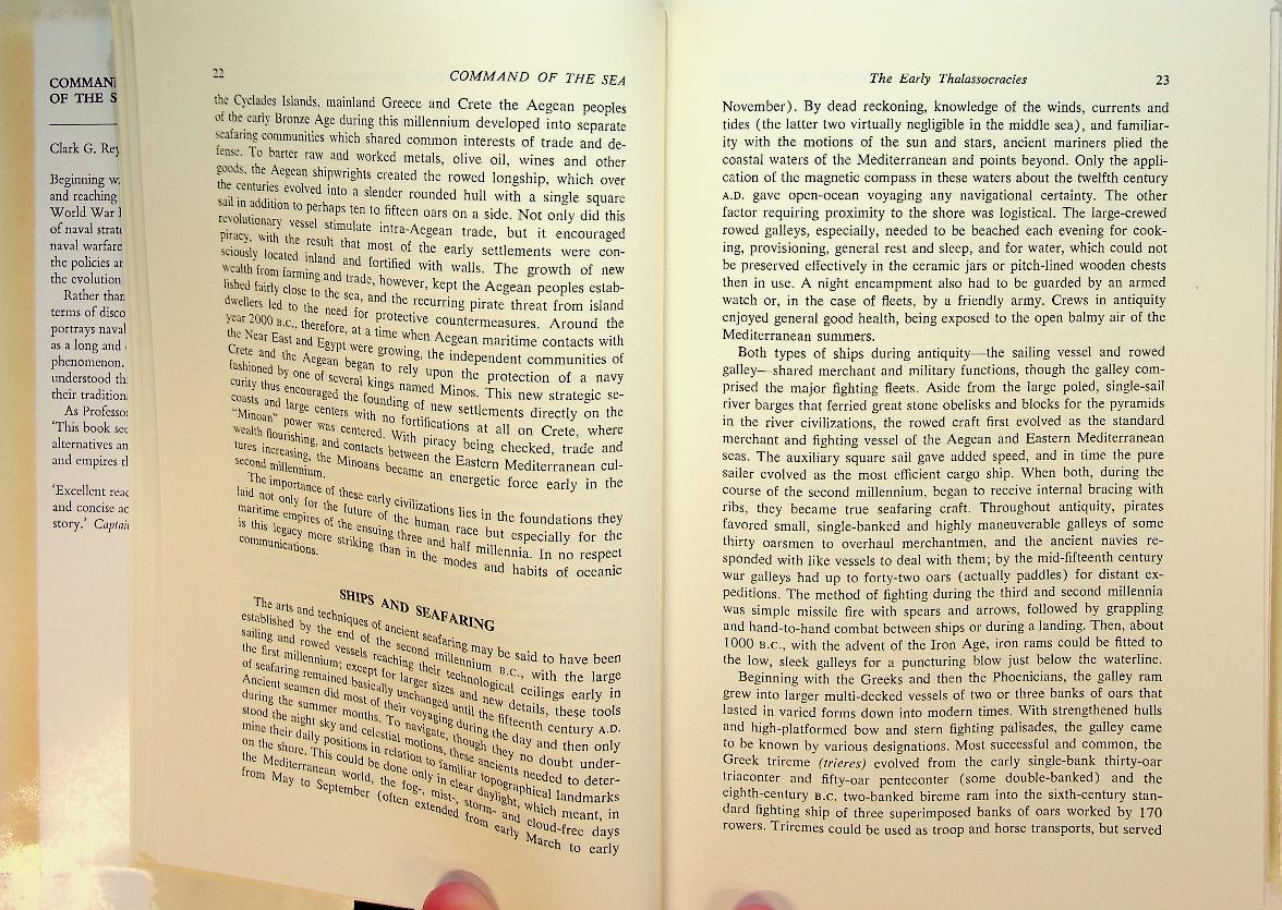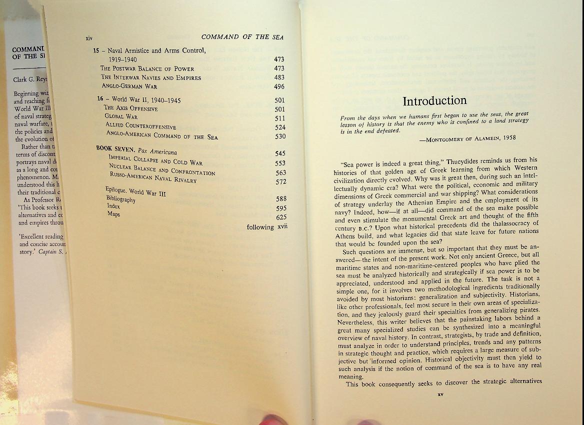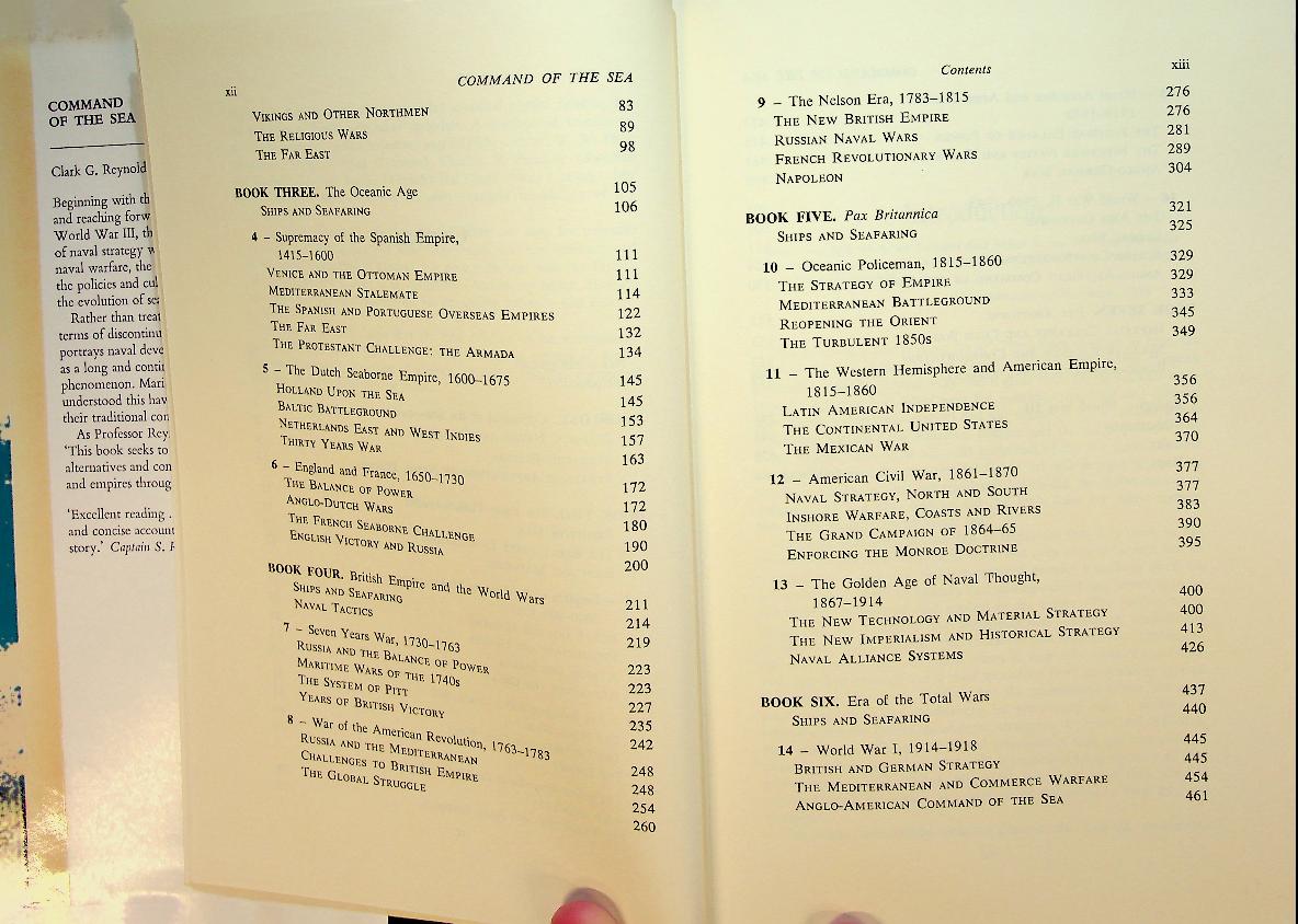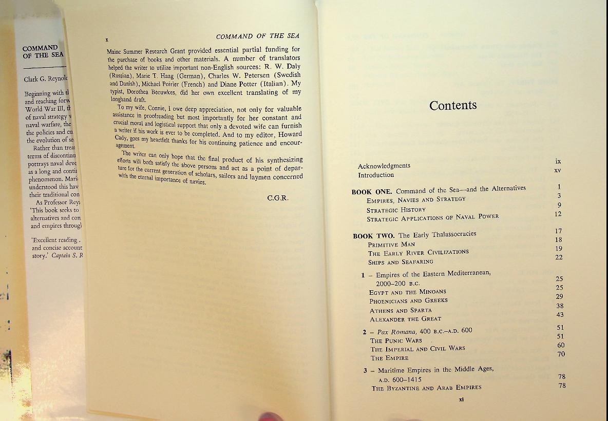 Reynolds, Clark G: 1974 London, hardcover with dust jacket, 642 pages. Wide-ranging study of how sea power, naval strategy, and maritime empires have shaped global politics and economics from the earliest seafaring civilizations up to the modern era. Reynolds combines strategic analysis with narrative history to explain how control of sea lanes, naval technology, and maritime commerce repeatedly determined the rise and decline of great powers. ISBN 9780898746280 In very good condition