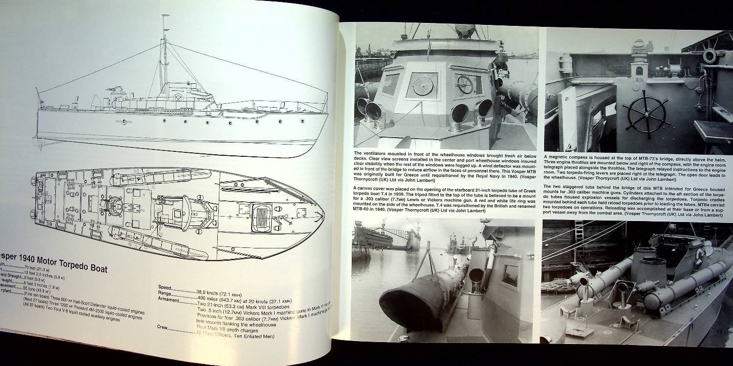 Connelly, G: 2000 USA, softcover 50 pages, with many photos, plans and detailed drawings. A concise overview of the design, development, and operational use of British Vosper Motor Torpedo Boats during World War II. It includes both historical context and technical details, emphasizing their speed, armament, and roles in significant naval engagements. ISBN 9780897474122 In very good condition