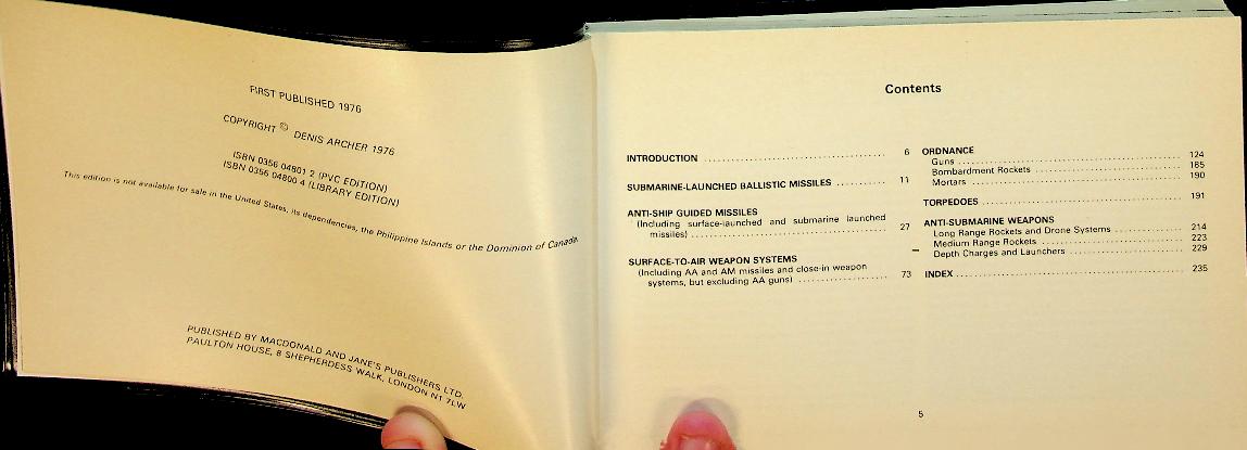 Archer, D: 1976 Janes UK, softcover 240 pages, with many photos. Navy Armament World Wide. A compact reference that surveys contemporary naval guns, missiles, torpedoes, and associated fire-control systems in service with the world’s navies in the mid-1970s, illustrated with numerous photographs and technical data tables. Edited by Denis Archer and published by Macdonald and Jane’s in 1976. ISBN 9780356048017 / 0356048012 In very good condition