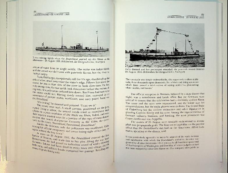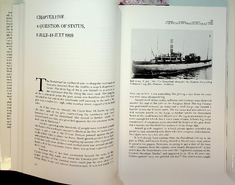 Messimer, D.R.: 1988 US Naval Institute, hardcover with dust jacket, 234 pages, with photos. The Merchant U-Boat by Dwight Messimer details the remarkable voyages of the German merchant submarine Deutschland, which successfully ran the British blockade during World War I to transport critical goods between Germany and the United States. Messimer recounts these dramatic journeys, highlighting the ingenuity, risks, and diplomatic challenges faced by the crew and Germany in their attempt to bypass Allied controls. ISBN 9780870217715 In very good condition.