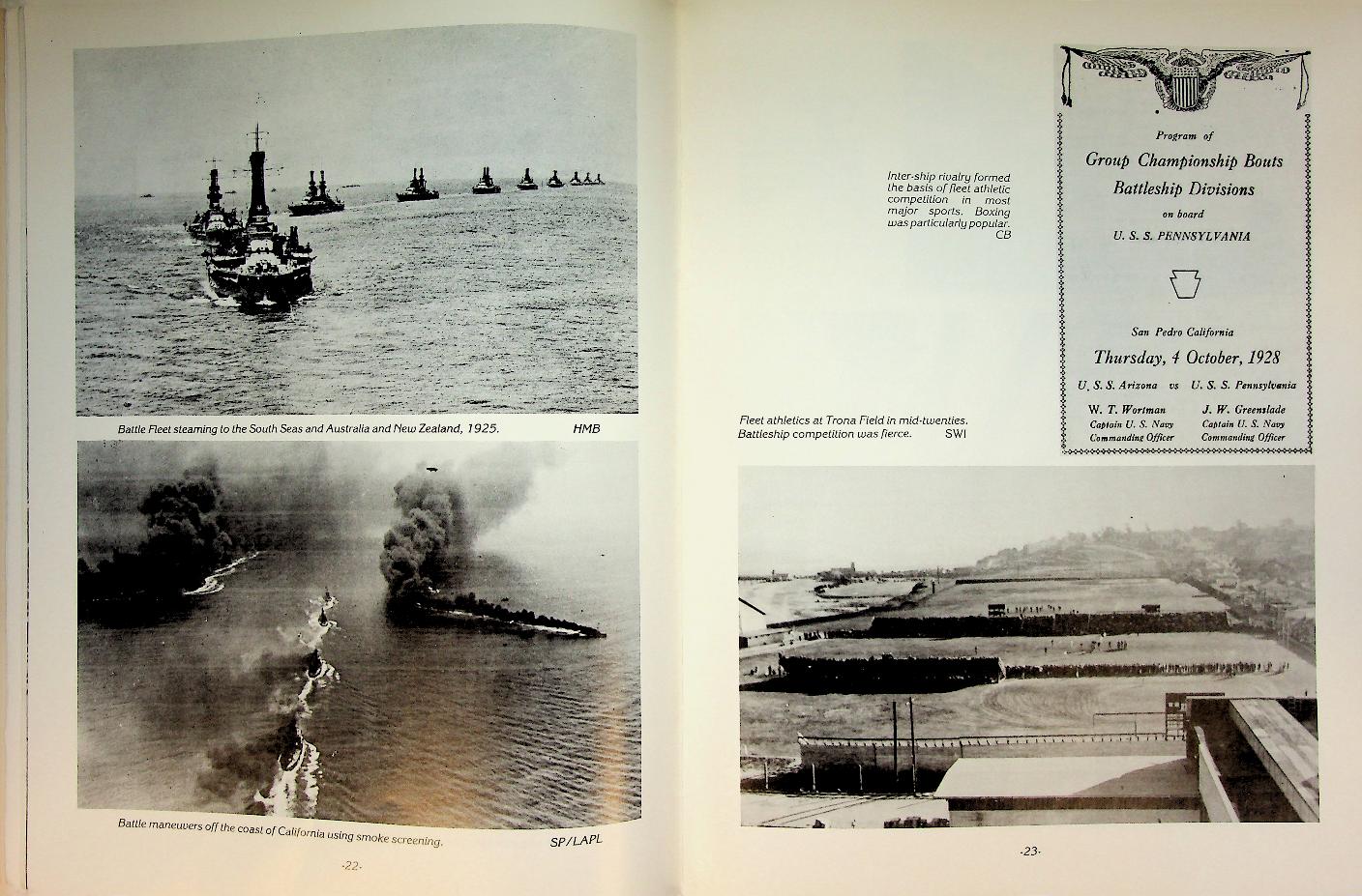 Beigel, Harvey M.: 1984 USA, softcover 71 pages, with many photographs. Illustrated naval history of the U.S. Pacific Fleet’s battleships during the interwar years, focusing on their basing, operations, and daily life in Southern California’s harbor cities. The book combines photographs, maps, and concise narrative to show how this concentration of capital ships shaped both American seapower and the growth of San Pedro and Long Beach as naval communities. ISBN 9780933126305 / 0933126301 In very good condition