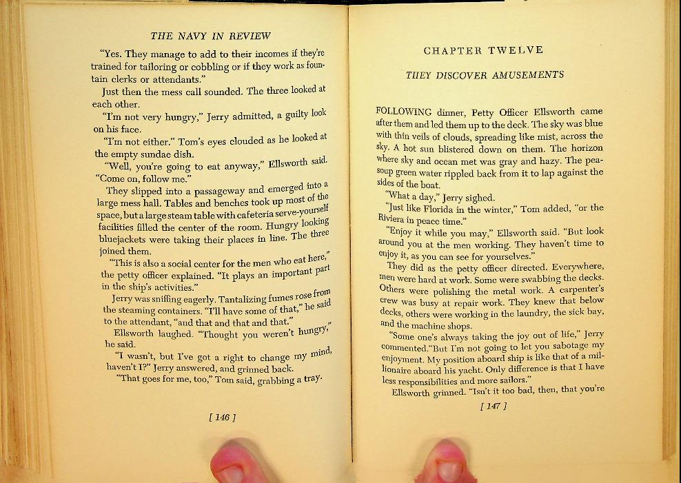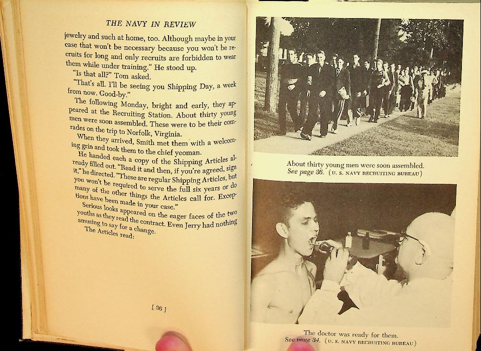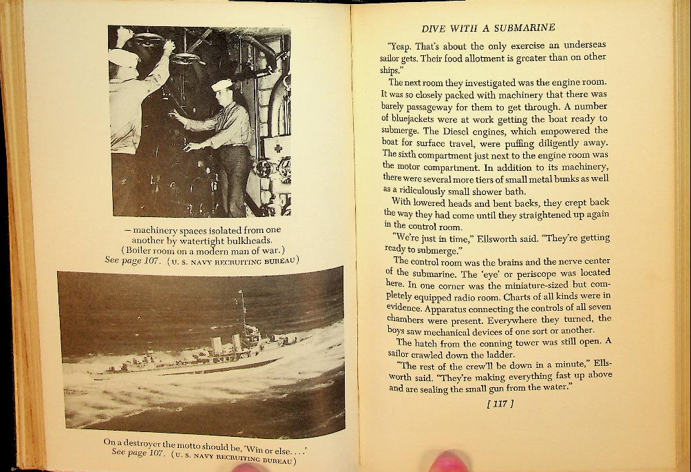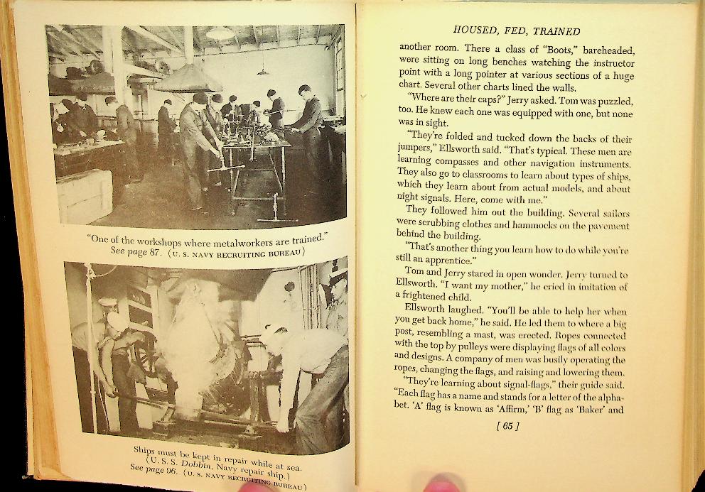 Erickson, Curtis L.: 1943 E.P. Dutton and Co New York., hardcover, 215 pages, with photographs. Curtis L. Erickson gives an engaging and factual overview of the organization, ships, aircraft, and daily life of the U.S. Navy, written for American youth on the eve of and during the early years of the Second World War. The book presents a thrilling picture of naval service and responsibilities, aiming to inform and inspire young readers about careers and duties in the Navy. In very good condition