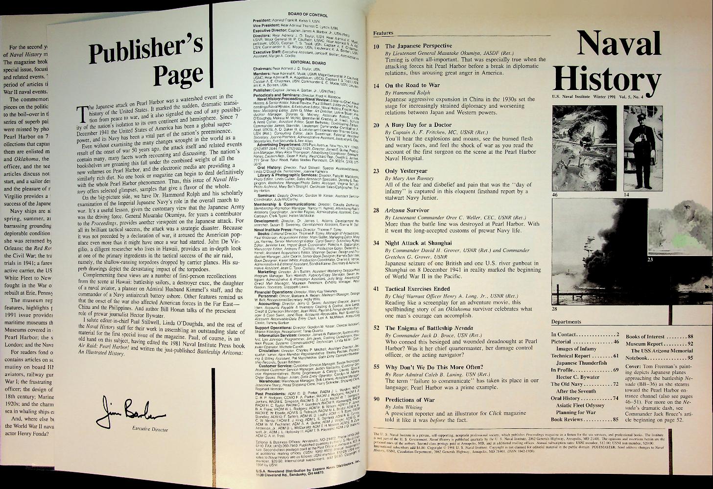 Naval Institute: USA, hardcover with dust jacket, about 80-100 pages, illustrated. Naval History bundles all four yearly issues of the U.S. Naval Institute’s illustrated history magazine, covering topics from the Cuban Missile Crisis to World War II and Pearl Harbor commemorations in article, photo, and feature form. It offers a year’s worth of accessible yet authoritative essays, reviews, and archival pieces on U.S. and international naval operations, commanders, and ships for both enthusiasts and scholars. We can deliver the volumes! 4 1990/ volume 5 1991/ volume 6 1992/ volume 7 1993/ volume 8 1994/ volume 9/1995. During ordering you can fill in at the very end of the payment procedure the year(s) you want to become,, or email with us. In very good condition