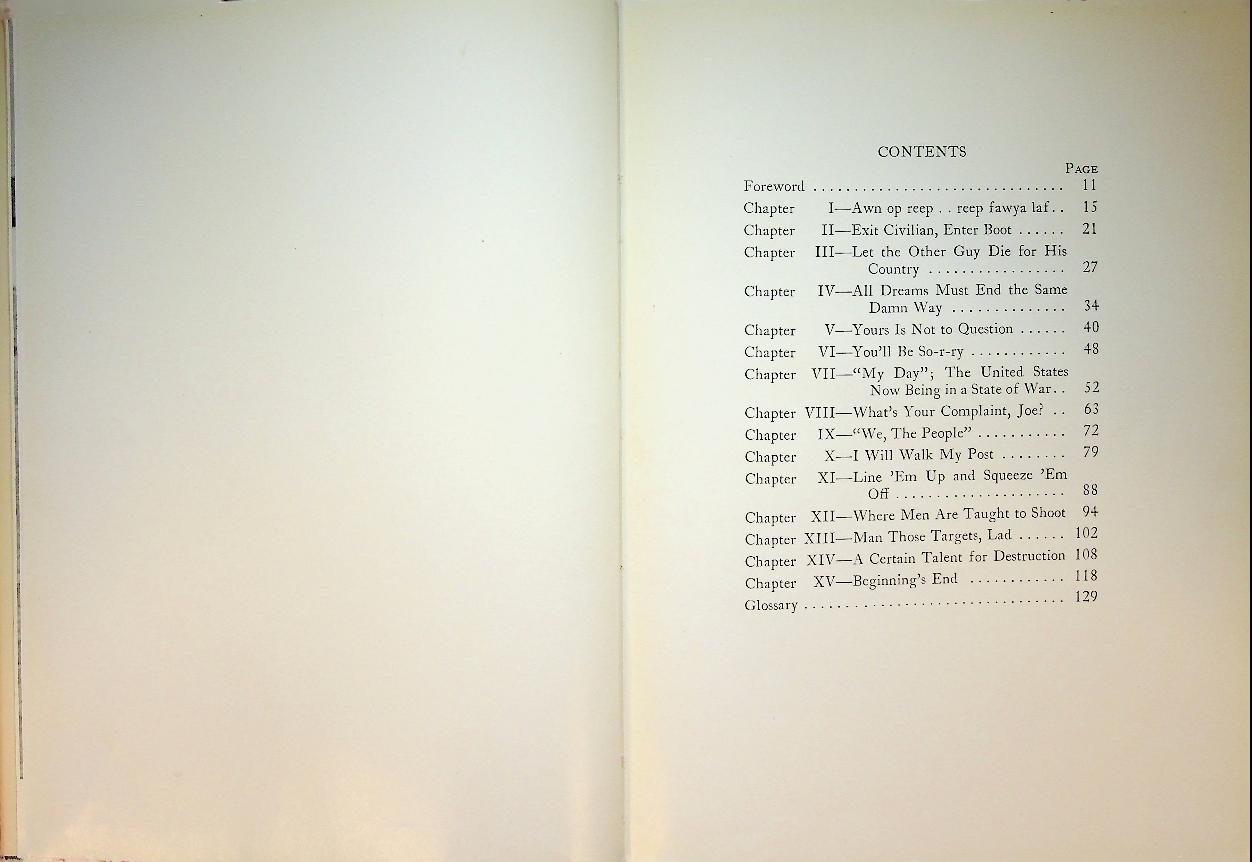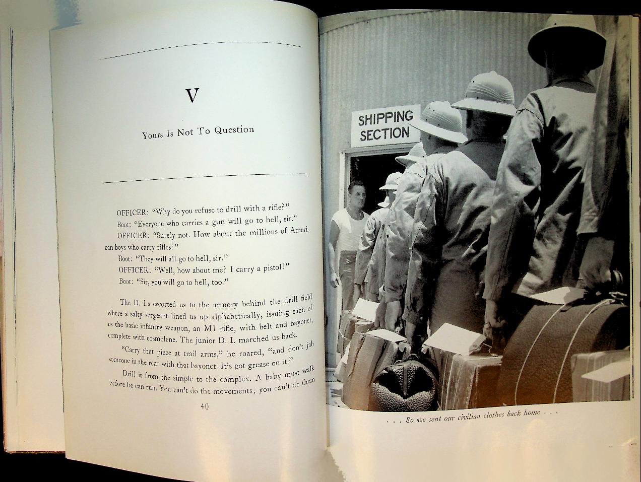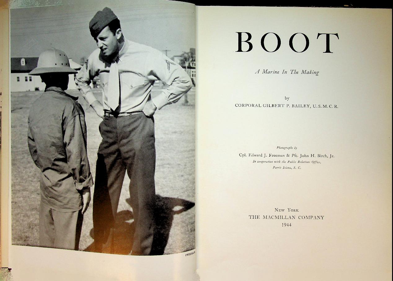 Bailey, Gilbert: 1944 Macmillan New York, hardcover, 131 pages, with photos. Corporal Gilbert P. Bailey’s first‑person and often humorous account of his recruit training at the U.S. Marine Corps boot camp on Parris Island during the Second World War. Through anecdotes and descriptions of drills, hardships, and camaraderie, Bailey shows how rigorous physical and psychological training forges civilians into Marines. In very good condition.