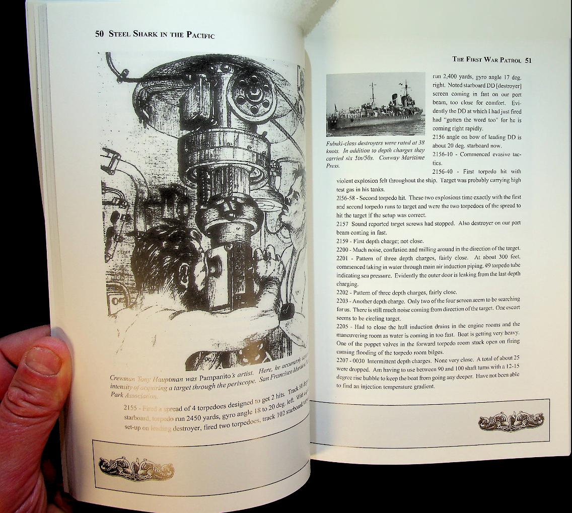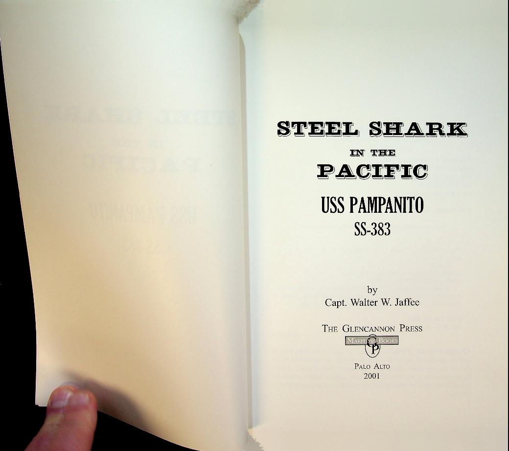 Jaffee, W.W.: Glencannon Press 2001 Palo Alto US, softcover 208 pages, with many photo's. Submarine survivor of WW2. Steel Shark in the Pacific is an English language narrative history by Walter W Jaffee about the US Navy fleet submarine USS Pampanito SS 383 and her patrols in the Pacific during the Second World War. The book follows the boat and crew through their war cruises using patrol reports and veterans’ recollections and gives an accessible picture of day to day submarine operations attacks and survival in the Pacific theater ISBN 9781889901169. In very good condition