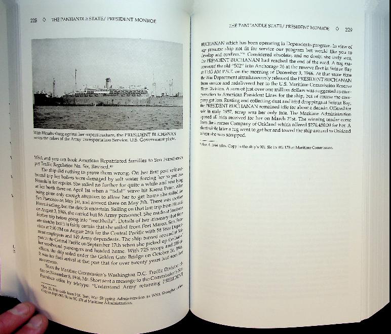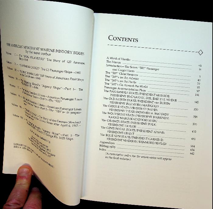 Goldberg, Mark H.: 1996 The American Merchant Marine Museum New York, softcover 646 pages, with photo's. History of the seven sisterships Government owned passenger liners. The so called president liners. The book surveys American President Lines’ “President” steamers of the interwar era, combining design histories, corporate context, and operational narratives to document how these liners embodied U.S. merchant marine ambitions between World War I and World War II. Through extensive archival detail and period anecdotes, it traces individual ship careers, technical classes (such as the “502s”), and dramatic episodes that foreshadowed their wartime roles and postwar legacies. ISBN 9781879180116 In very good condition
