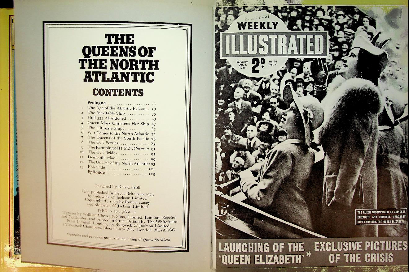 Lacey, R: 1973 Sidgwick UK, hardcover with dustjacket 124 pages, with photo's. The Queens of the North Atlantic by Robert Lacey is an illustrated history of the great transatlantic liners of the twentieth century, especially Cunard’s Queen Mary and Queen Elizabeth, exploring their design, luxury, and cultural impact on ocean travel. It combines technical detail, rich archival material, and anecdotes about passengers and crews to portray how these iconic ships came to symbolize a glamorous era between Europe and North America ISBN 9780283979231 / 0283982241 In good condition