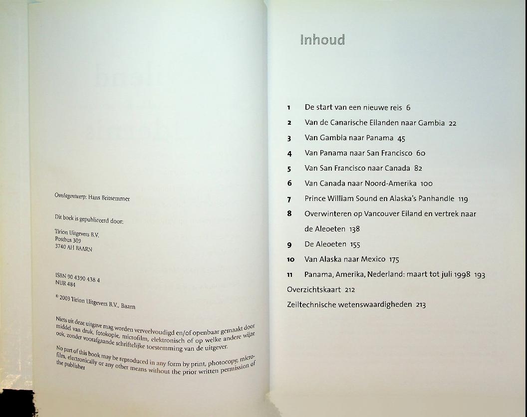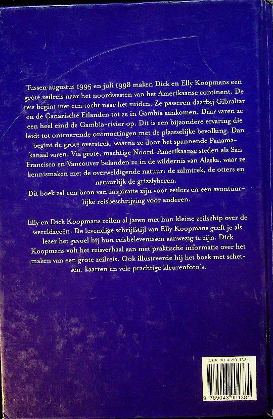 Koopmans-Eijlders, Elly en Dick Koopmans: 2003 Baarn, hardcover 224 blz., met foto's en kaarten. “Zeilend naar de wildernis” beschrijft hoe Dick en Elly Koopmans tussen 1995 en 1998 met hun zeiljacht via onder andere het Panamakanaal naar de ruige kusten van Canada en Alaska varen, langs verlaten baaien, fjorden en gletsjers. Het boek combineert reisverslag en praktische zeilervaringen met sfeervolle impressies van natuur, ontmoetingen en het leven aan boord in afgelegen gebieden. ISBN 9789043904384 In goede staat