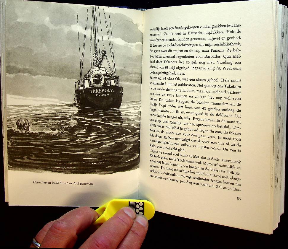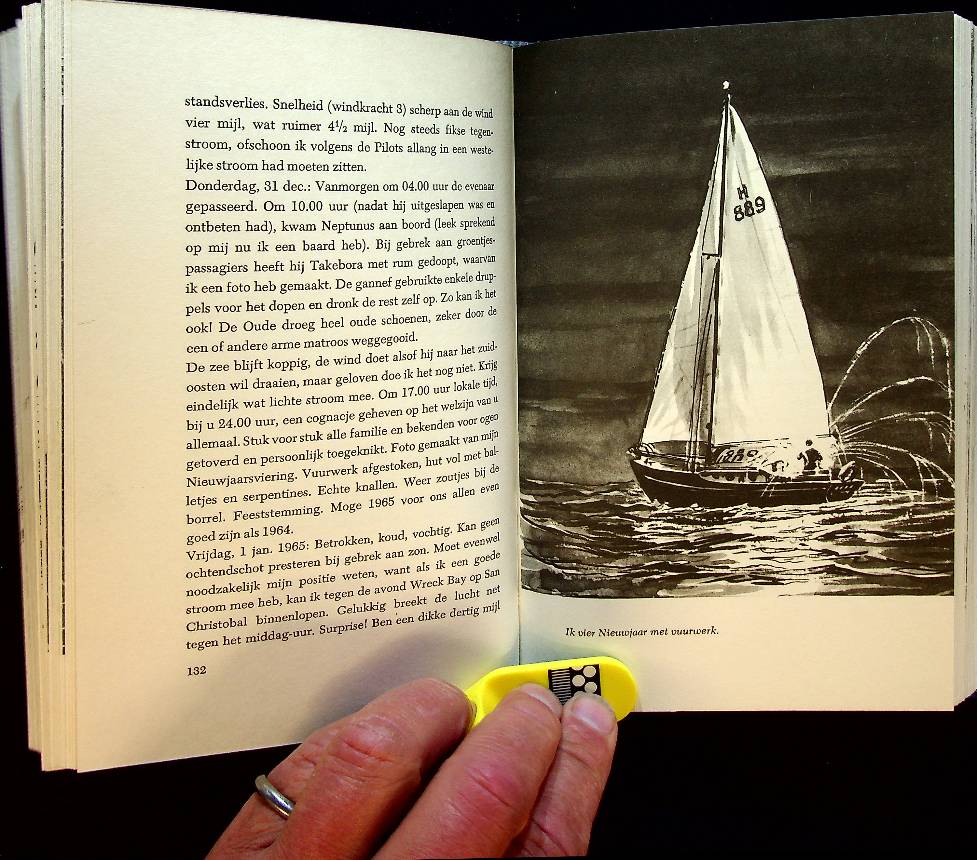 Maurenbrecher, H.A.: 1966 Laren, hardcover zonder papieromslag 213 blz. Met vele illustraties van Pieter J. Kuhn. Het journaal van de Takebora beschrijft de dramatisch verlopen solotocht (1964–1966) van de gepensioneerde luchtmachtgeneraal Hans Maurenbrecher, die met zijn negen meter lange zeiljacht Takebora via de oceanen naar onder meer Nieuw-Zeeland zeilt en onderweg tal van gevaren, stormen en technische problemen het hoofd moet bieden. In goede staat