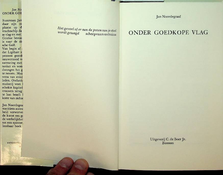 Noordegraaf, J: 1971 Bussum, hardcover met papieromslag, 181 blz. Een riskante reis van Kapitein Ligthart met een vrachtschip onder Libanese vlag met Griekse bemanning naar de Perzische Golf. In zeer goede staat