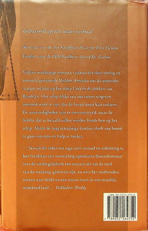 Goldman, F: 1998 Breda, hardcover met papieromslag, 432 blz. Esteban, een 19‑jarige oud-strijder uit Nicaragua, komt met veertien landgenoten als bemanning op de afgetakelde, aan de kade wegrottende vrachter Urus terecht, waar vlag-van-gemak, havenarmoede, veiligheidsgebreken en een schijnkapitein leiden tot uitbuiting, scheepsonwaardigheid en een “spookschip”-bestaan. Terwijl de Urus nooit zee kiest, toont het verhaal het bestaan van gestrande zeelieden: twist rond maritieme jurisdictie, loze promoties als muiterij‑rem, ratten, brand en een lifeboat‑drill zonder vaart, tot havenwerkers en een ship visitor de zaak blootleggen en Esteban ontsnapt aan het drijvende niemandsland ISBN 9789052264752 In goede staat