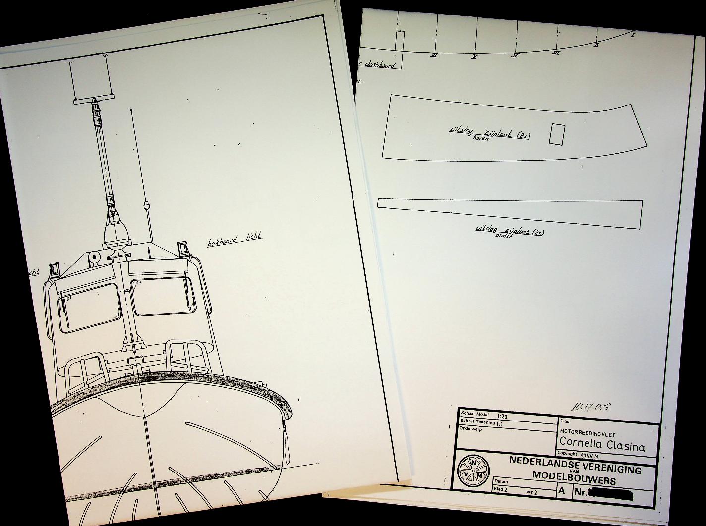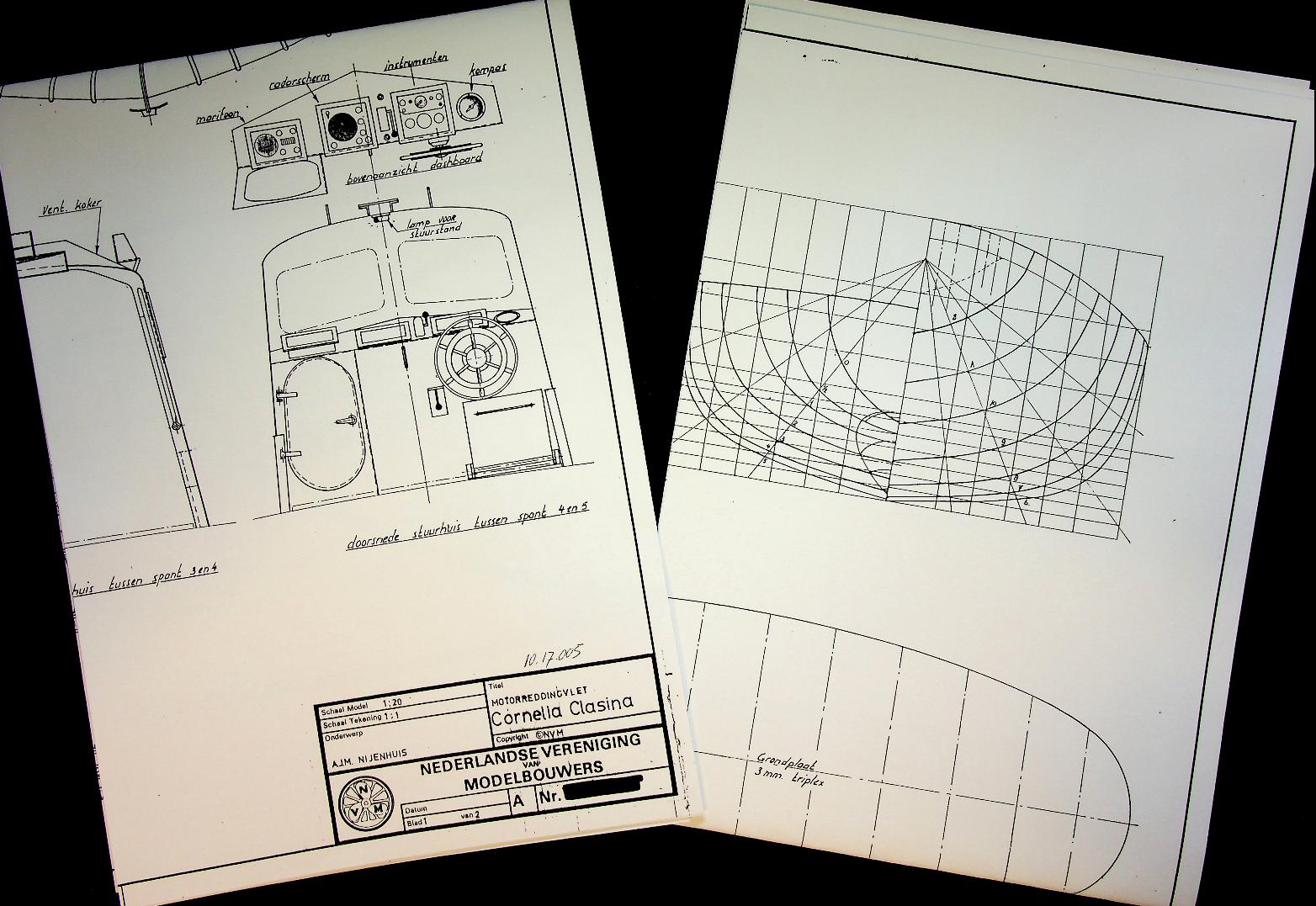 Modelbouwtekeningen Motorreddingvlet '' Cornelia Clasina'' 1978 KNZHRM waddenvlet type ''Zeeleeuw'