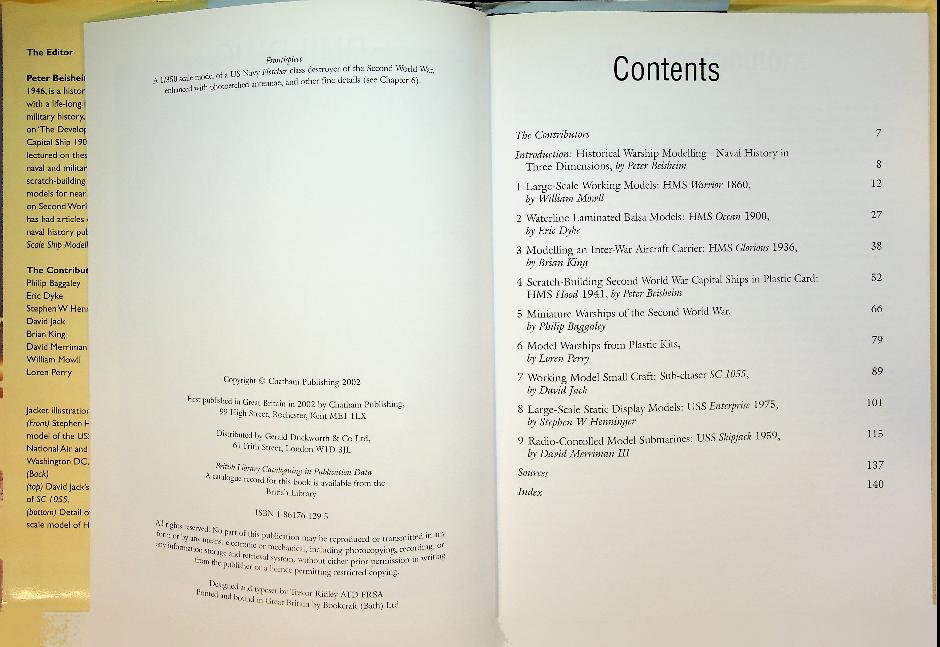 Beisheim, P: 2002 UK, hardcover 144 pages. illustrated practical manual that guides ship modellers of various skill levels through planning, constructing, detailing, and finishing accurate scale models of warships from the iron and steel periods, using both kits and scratch-building techniques. The book covers topics such as hull construction, superstructure, fittings, painting, and realistic detailing, helping readers to improve both their craftsmanship and historical accuracy in naval model building.. ISBN 9781861761293 / 1861761295 In very good condition
