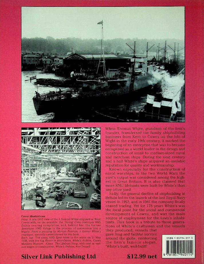 Williams, D.L.: 1993 UK, softcover, 96 pages, with many photos and a detailed list of built ship. "Maritime Heritage, White's of Cowes" by David L. Williams explores the history of the influential shipbuilder J. Samuel White & Co Ltd, chronicling its role in shipbuilding innovation and maritime industry on the Isle of Wight. The book combines historical narrative and rare photographs to document White's impact from the 19th century through its closure in the late 20th century. ISBN 9781857940114 In very good condition