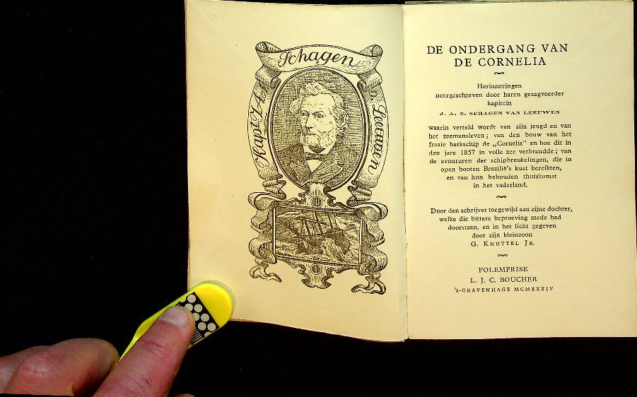 Schagen van Leeuwen, J.A.M.: Den Haag 1934, softcover 129 blz. In een oplage van 1000 ex.. De ondergang van de bark Cornelia van Schagen van Leeuwen is de autobiografische herinnering van gezagvoerder J.A.N. Schagen van Leeuwen aan de dramatische ondergang van zijn schip “Cornelia”, waarin hij de reis, het ongeluk en de nasleep beschrijft. Het betreft een klassieke maritieme geheugenis uit de eind 19e eeuw. In goede staat. Kleine uitgave