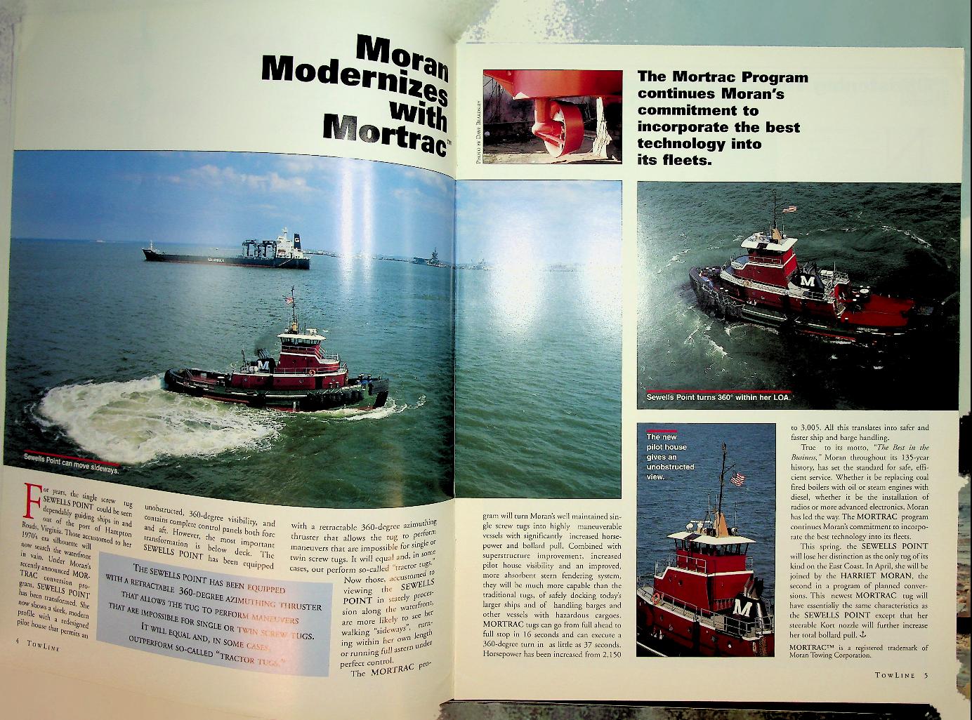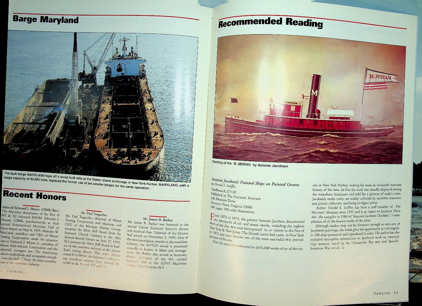Moran Towing: 1992-1997, softcover 20 pages. Lot of 5 magazines. In this case the Winter numbers 1992-93, 1993-94, 1994-95, 1995-96, 1996-97. TowLine is Moran Towing’s in-house magazine, published since 1947, featuring articles about the company’s fleet, employees, customers, and wider maritime industry news. Issues typically include feature stories, historical and technical pieces on Moran tugs, and company updates documenting harbor and towing operations In very good condition