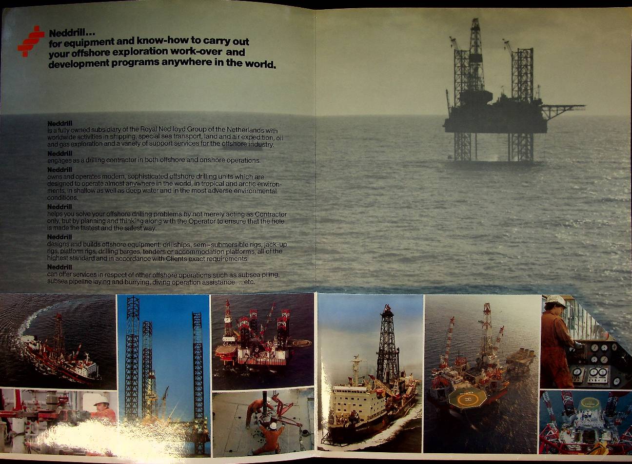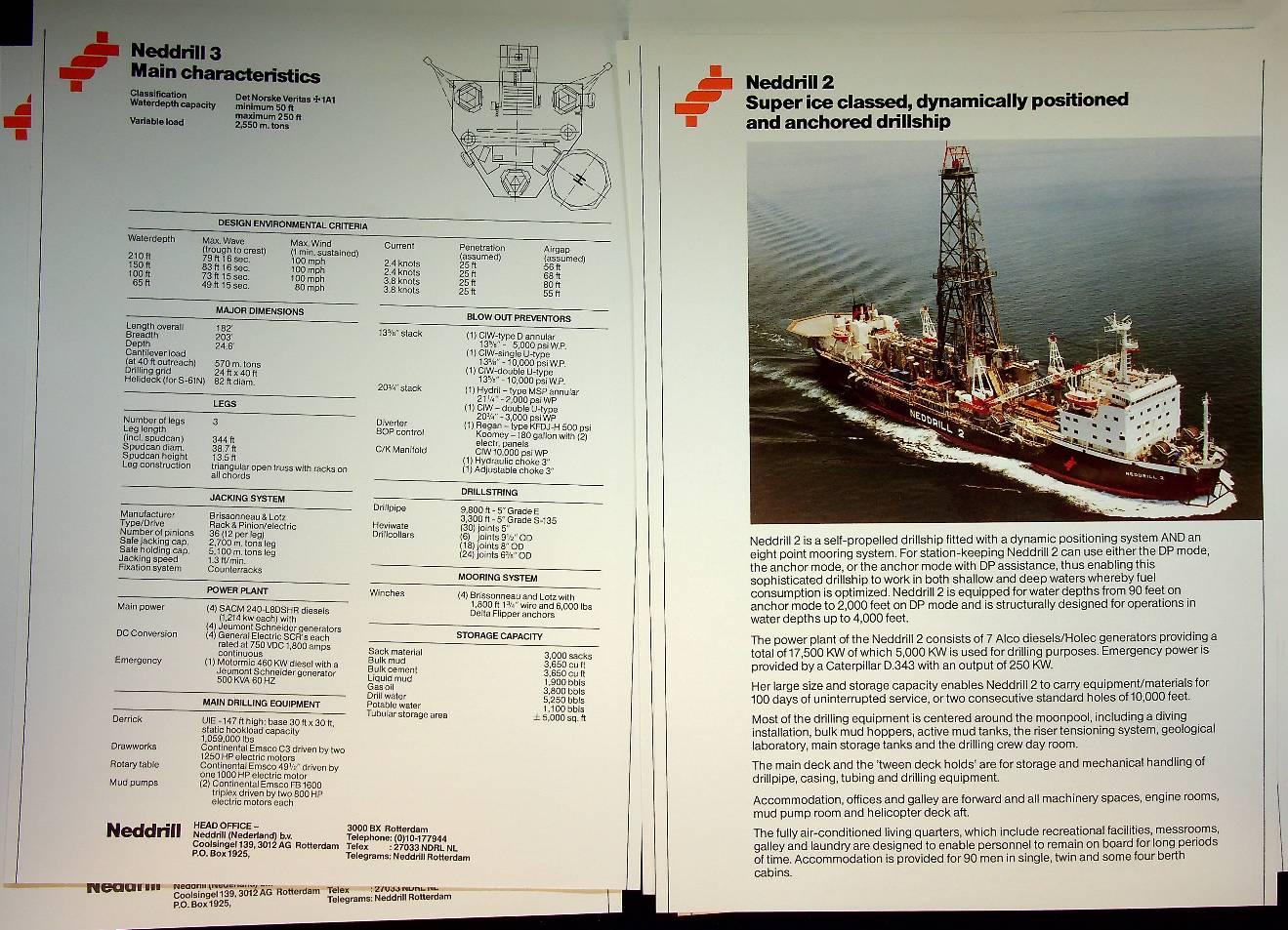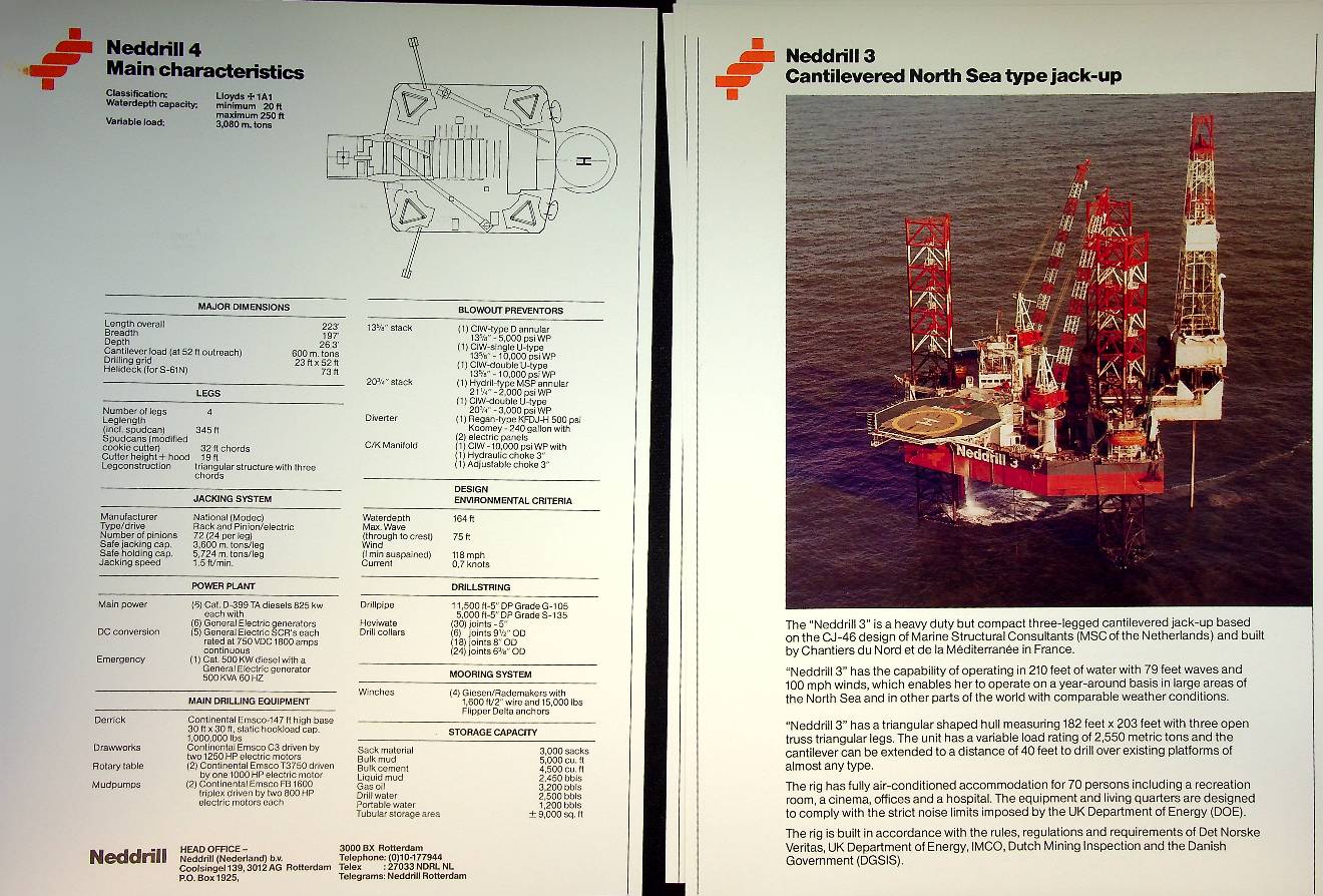 Neddrill: Ca. 1980 Rotterdam, map with 7 sheets of Neddrill Workships and Working Islands. All with photos and specifications. In very good condition.
