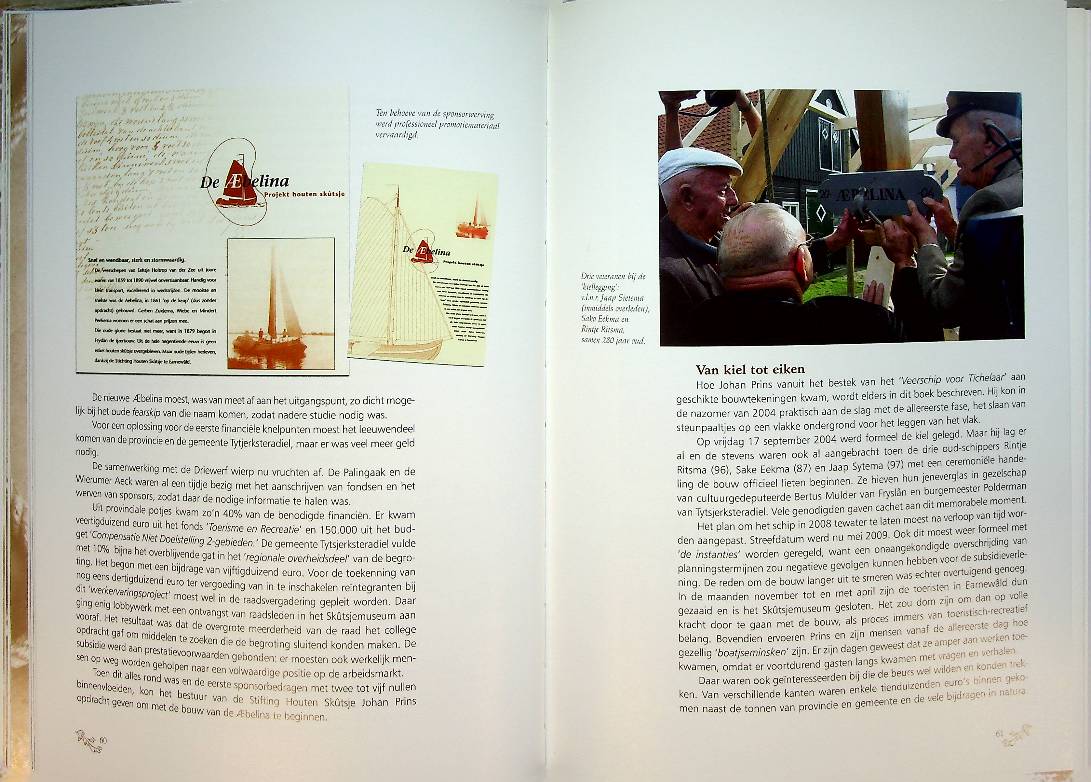 Prins, J. e.a.: 2009 Leeuwarden hardcover 144 blz., geïllustreerd. Aebelina, De doem van eer beschrijft de bouw van een nauwkeurige replica van het negentiende-eeuwse houten skûtsje Æbelina, van de eerste plannen tot het vaarklaar maken als pronkstuk van het Skûtsjemuseum Earnewâld. Het boek behandelt zowel de historische achtergrond van het oorspronkelijke snelste skûtsje als de moderne vakwerkrestauratie en -nieuwbouw door scheepsbouwer Johan Prins en zijn team. ISBN 9789077948316 In zeer goede staat