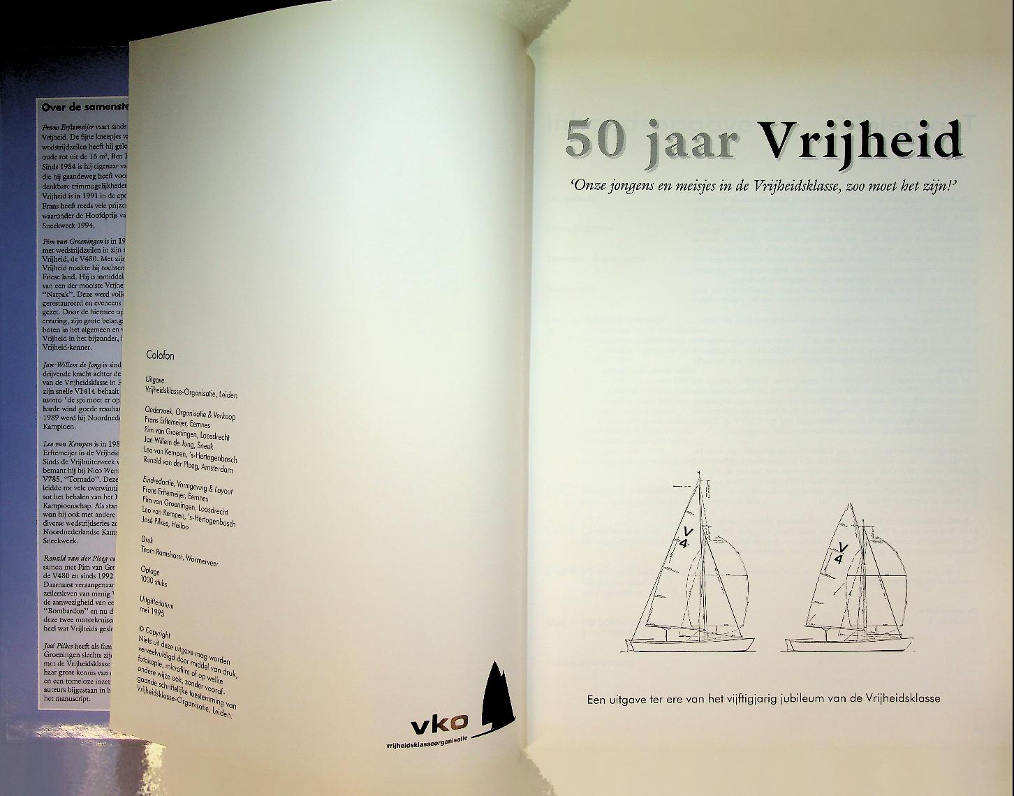 Erftemeijer, F: 1995 Leiden, hardcover met papieromslag 192 blz., met foto's. Jubileumboek over de Vrijheidsklasse zeiljachten, met een historische schets van de klasse en veel fotomateriaal. Het bevat daarnaast een overzicht/documentatie van 1559 Vrijheids-jachten. In zeer goede staat.